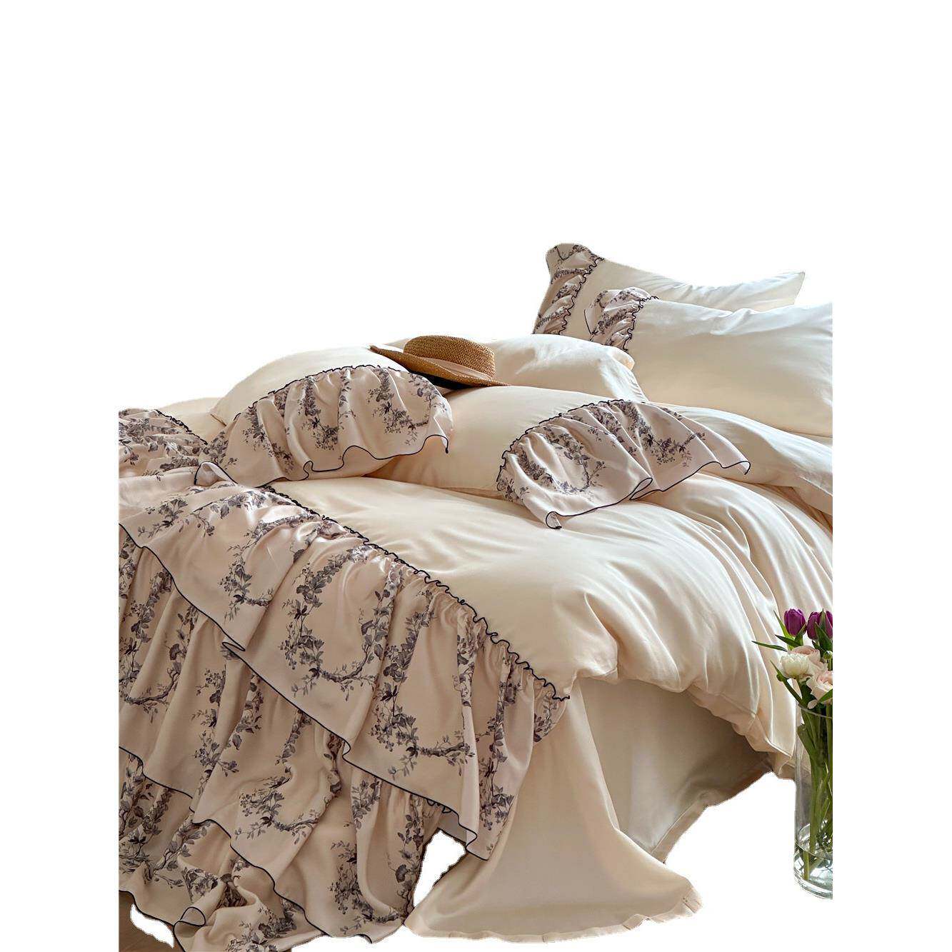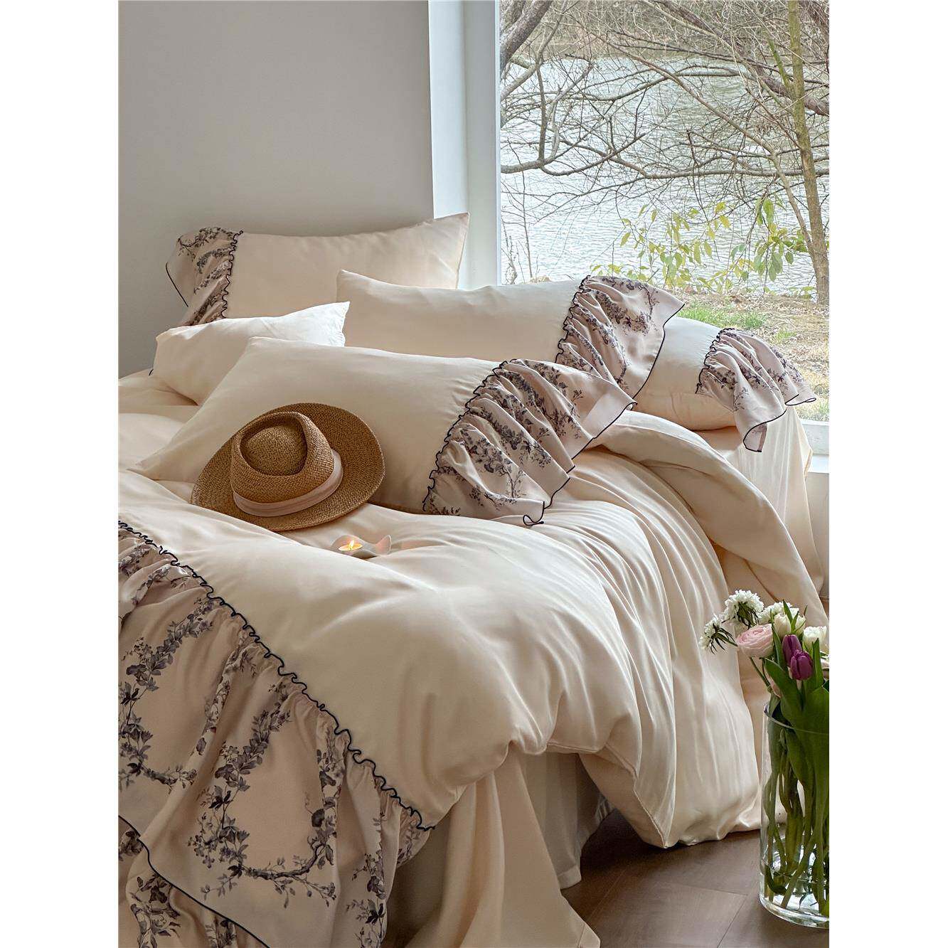 奥地利进口80支双面天丝四件套水墨画风景花边被套床上冰丝套件