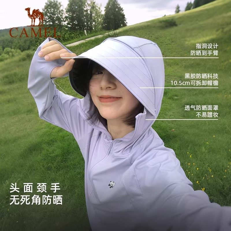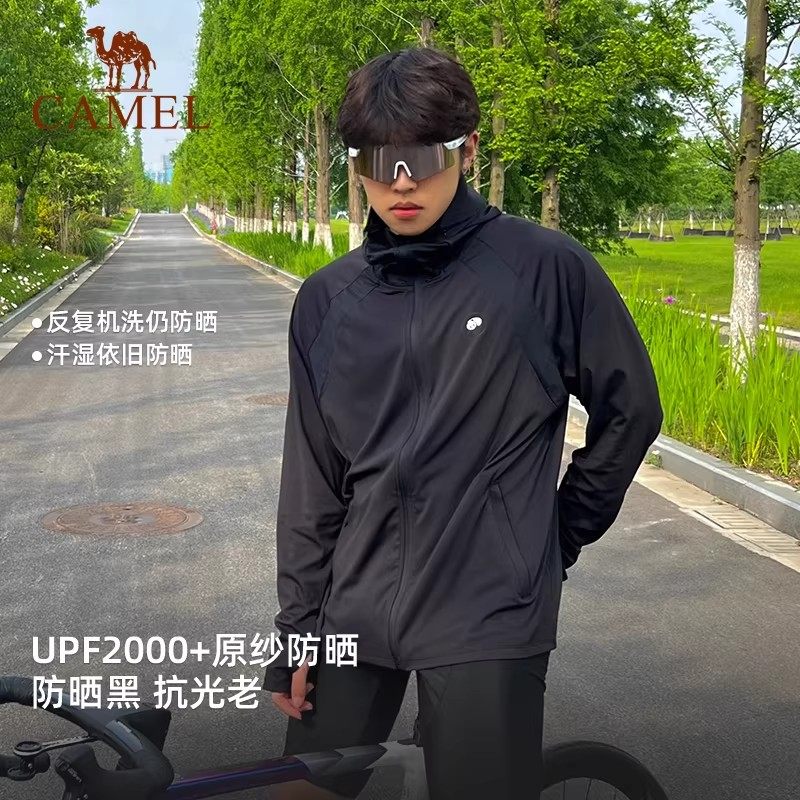 骆驼熊猫系列户外冷白皮防晒衣女款夏原纱透气UPF2000+黑色外套男