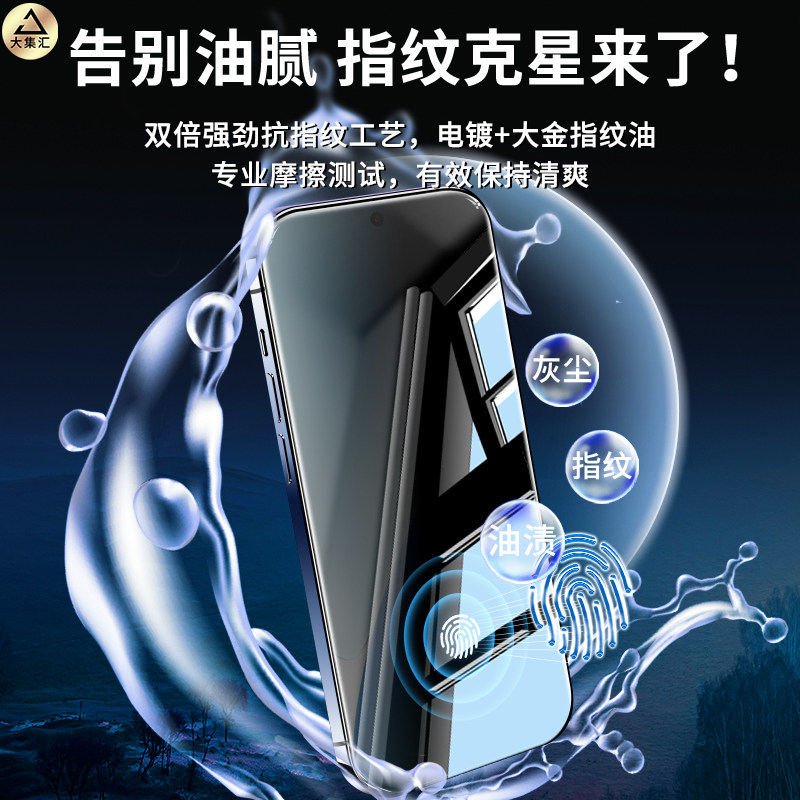 [不沾指纹]适用iPhone17/16钢化膜苹果15/14手机13promax防窥12全屏XR/xsmax全包11贴X防摔8por高清plus