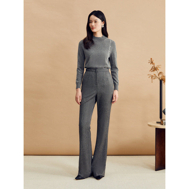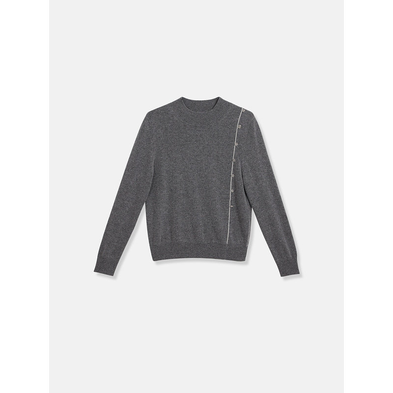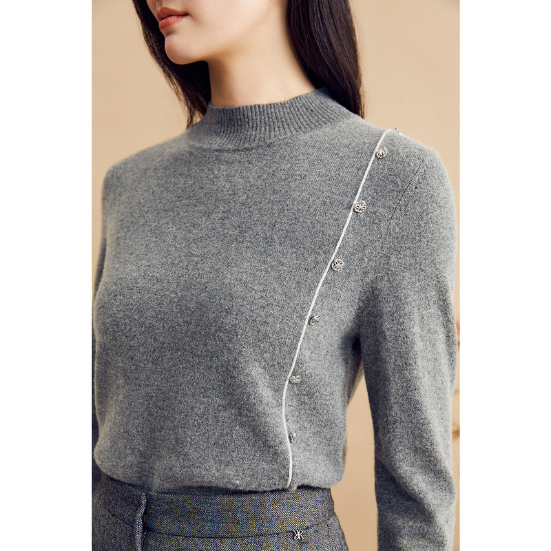 YINER音儿女装冬季法式格雷系金属扣饰桑蚕丝羊绒混纺针织衫套头