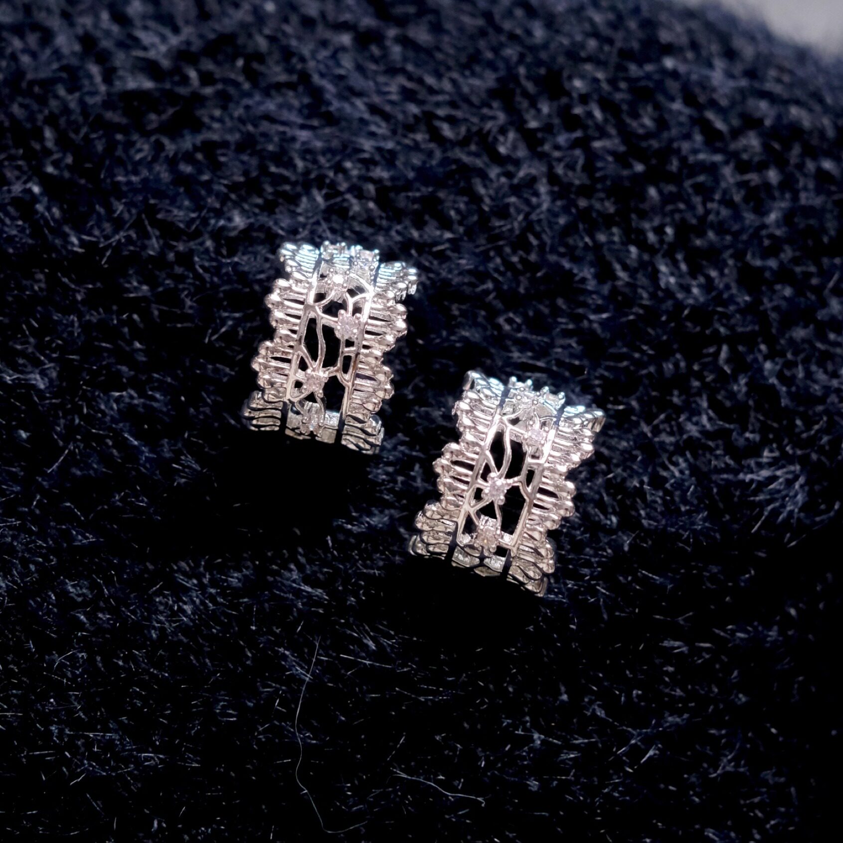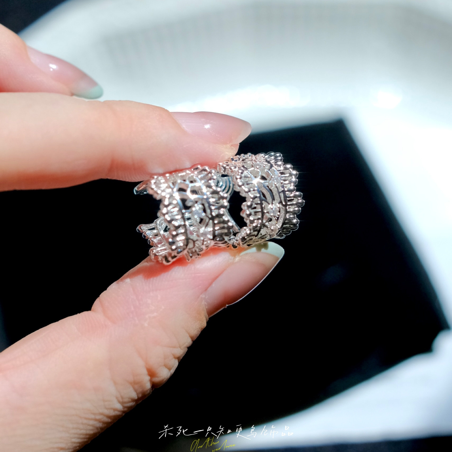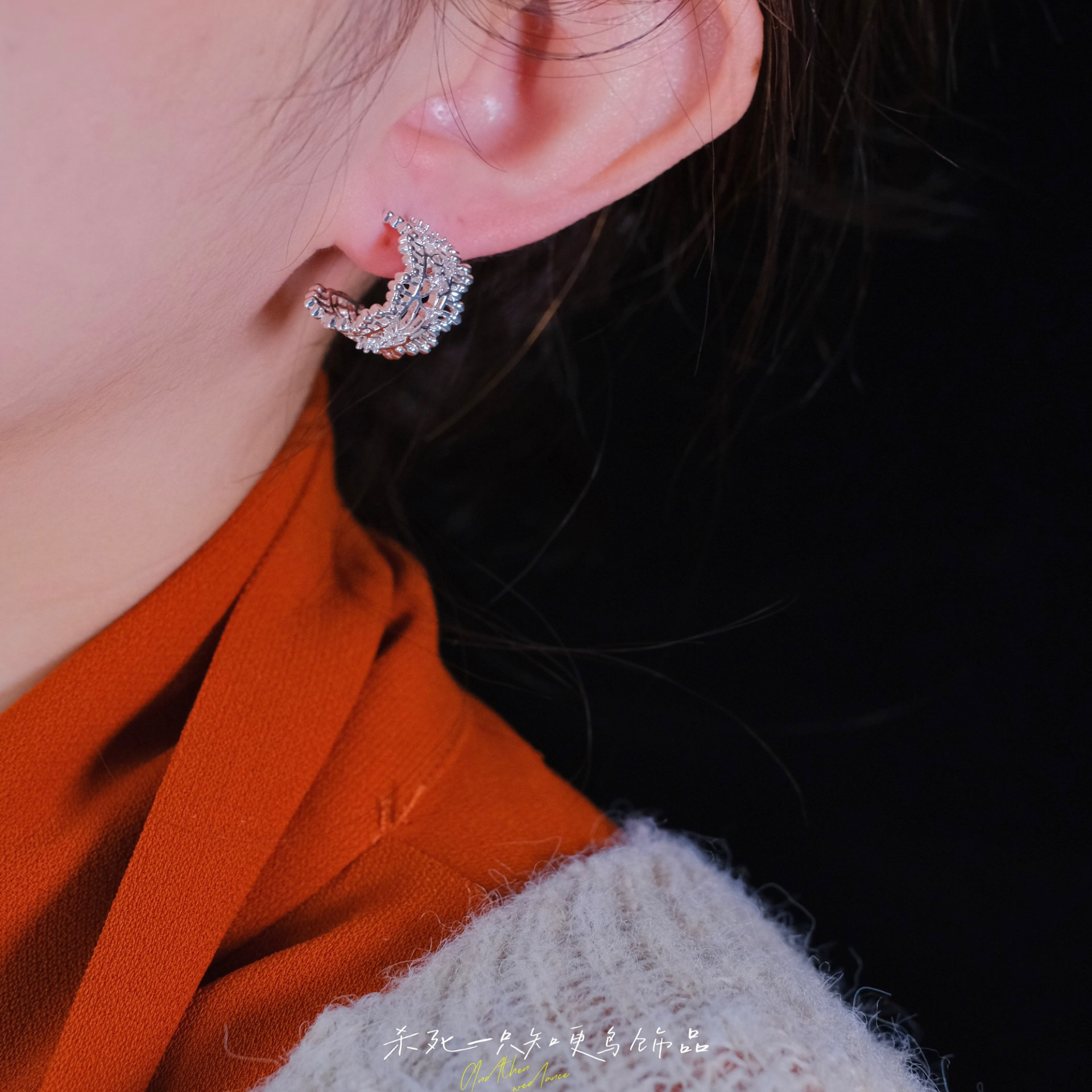 《银雾之森》法式小众精致清冷感银白蕾丝花边镂空耳钉耳环耳夹女