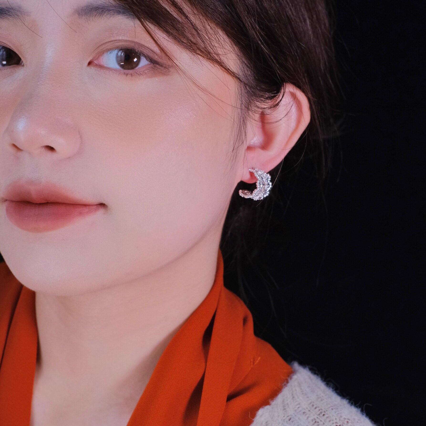 碎银耳钉女秋冬小众设计感轻奢高级感气质大气耳环无耳洞耳夹耳饰