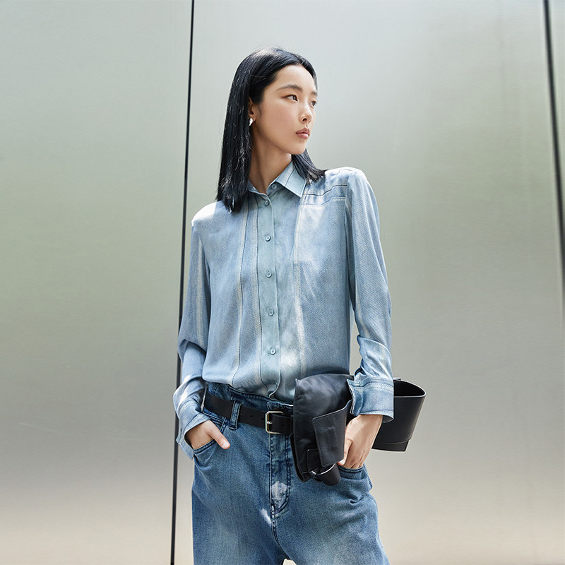 LESS桑蚕真丝衬衫女时尚复古休闲宽松长袖衬衣2M8211530