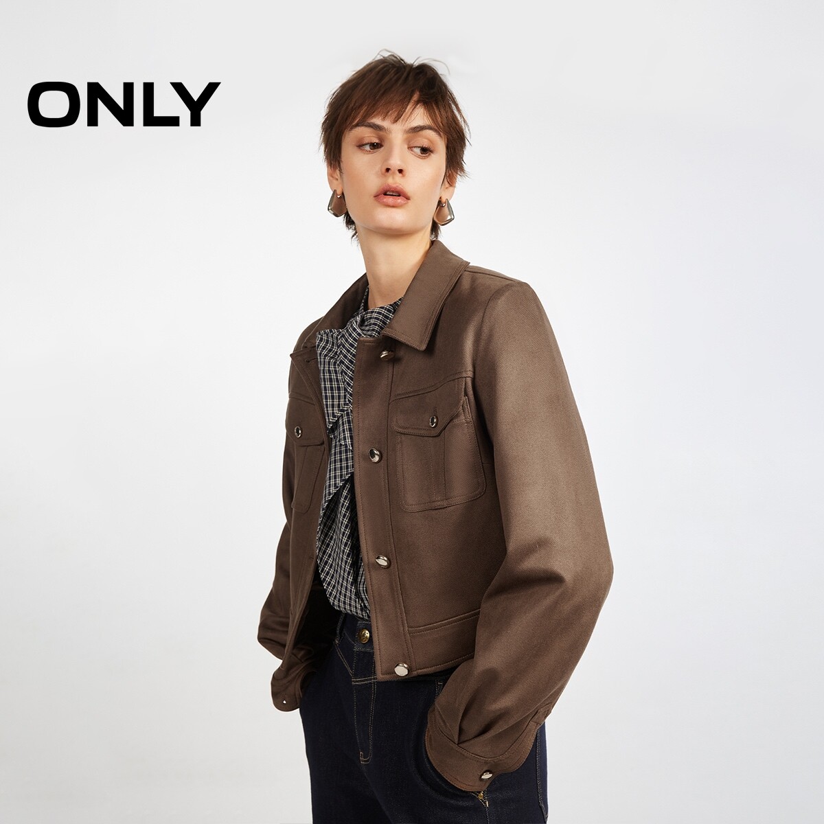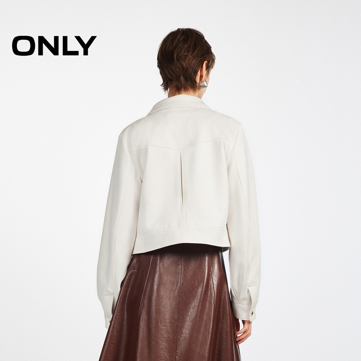 ONLY2026春季新款短款立体贴袋纯色挺阔正肩剪裁立体褶皱风衣女