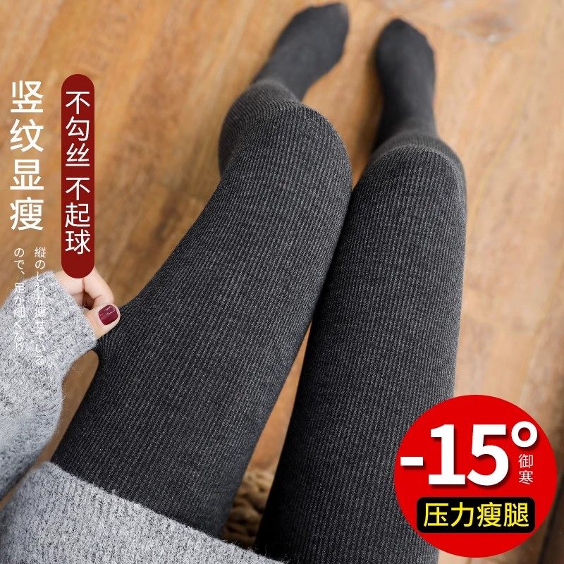 菇娘家热压连裤袜高支棉羊毛打底裤女灰色大码秋冬黑色保暖瘦腿袜