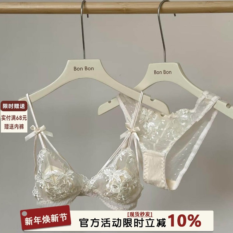 法式性感纯欲三角杯内衣女超薄款蕾丝若隐若现无钢圈小胸文胸套装