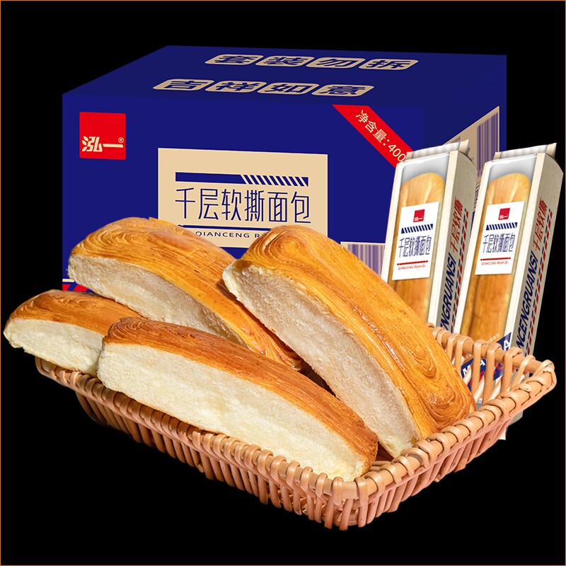 泓一千层软手撕面包休闲食品整箱营养健康早餐奶油原味鸡蛋奶香