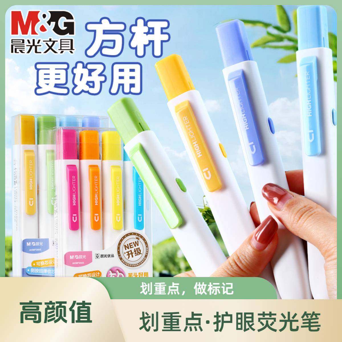 晨光优品按动荧光笔大容量中小学生笔记标记彩色记号淡色系