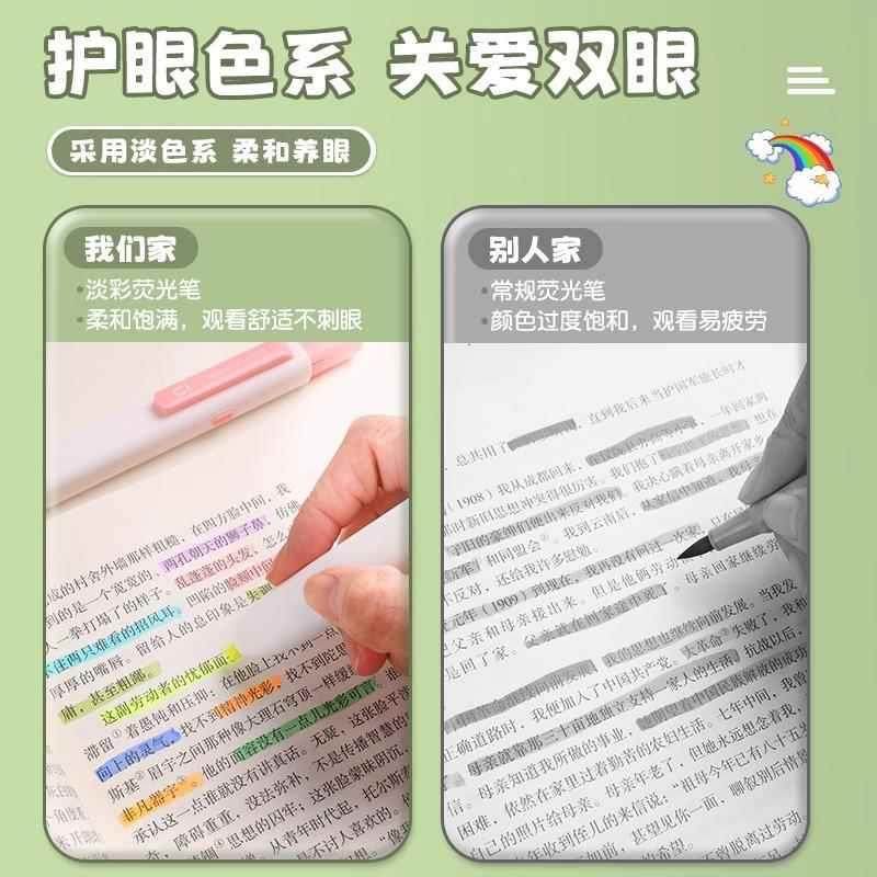 三年二班护眼荧光笔高颜值荧光标记笔学生用多色记号笔彩色划重点手帐手账笔做笔记本马卡龙淡色萤光笔银光笔