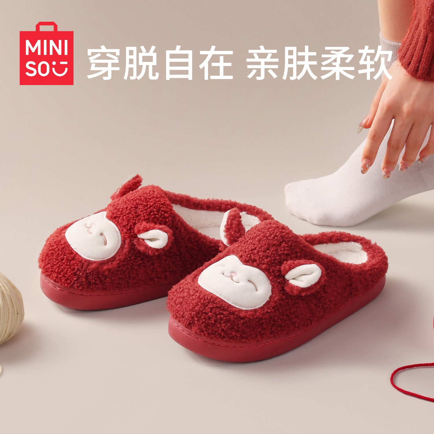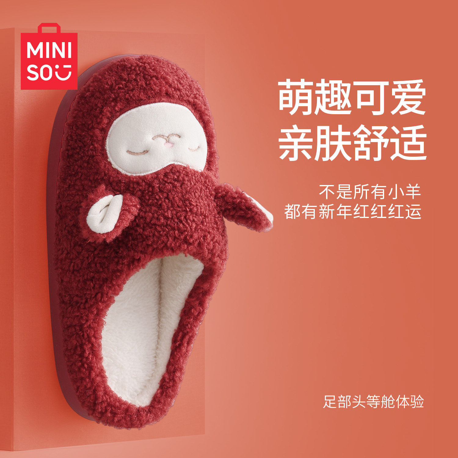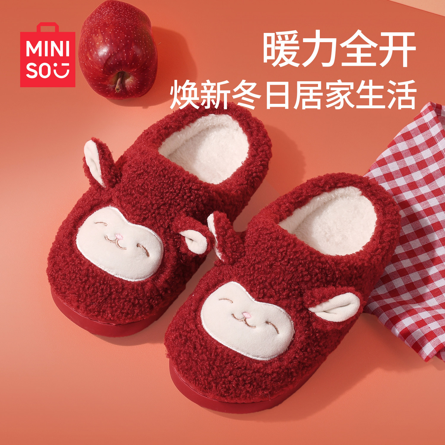 名创优品居家棉拖鞋女新年红圣诞红色拖鞋可爱保暖防滑棉拖鞋亲子