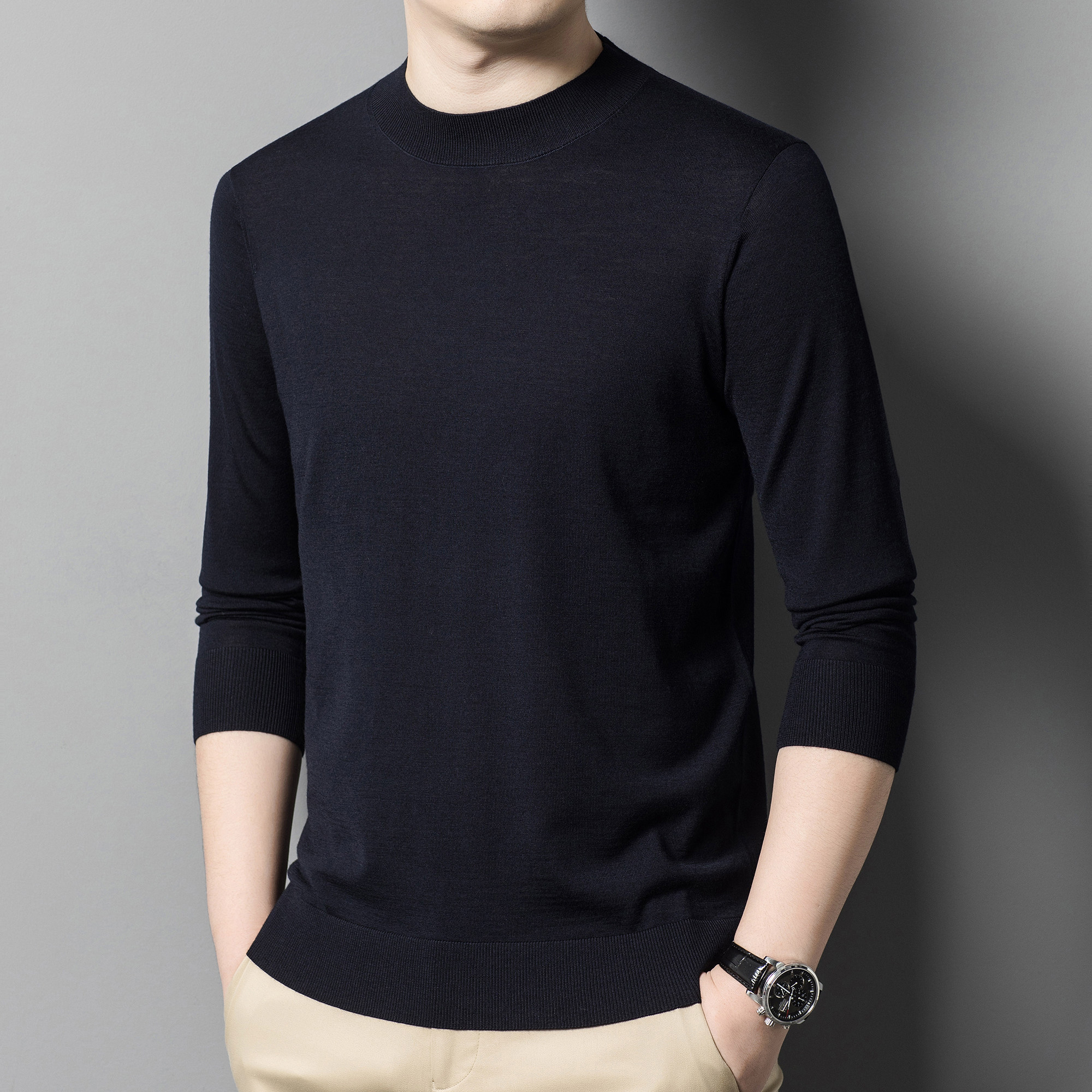 轻柔薄防缩工艺精纺羊毛衫男秋冬100超细美丽诺羊毛打底针织长袖