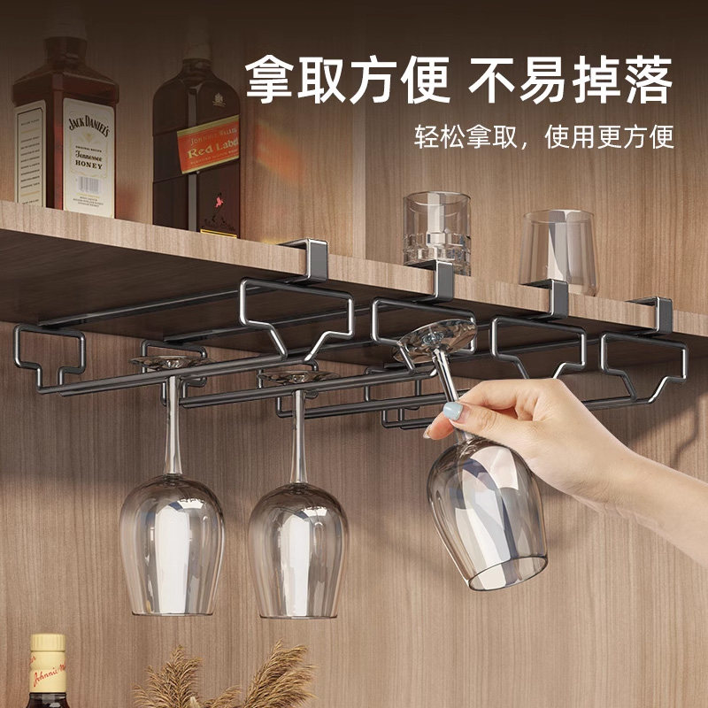 免打孔红酒杯架倒挂酒柜高脚杯收纳架子家用悬挂轻奢高档摆件
