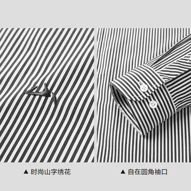 HLA/海澜之家山不在高条纹外套长袖休闲衬衫25秋新刺绣时尚衬衣男