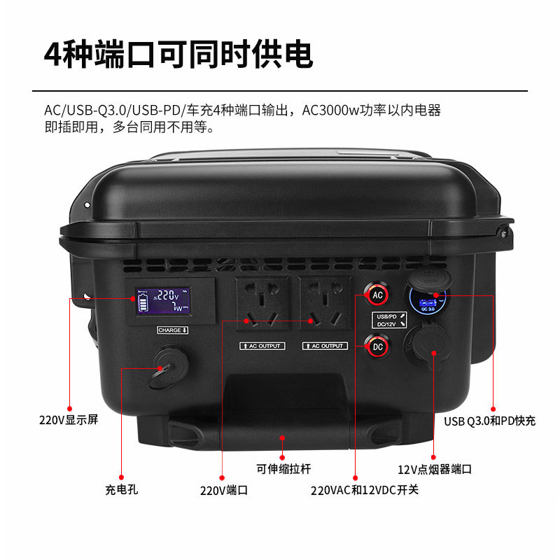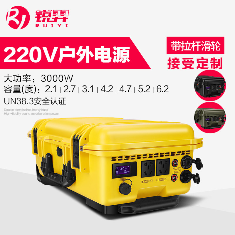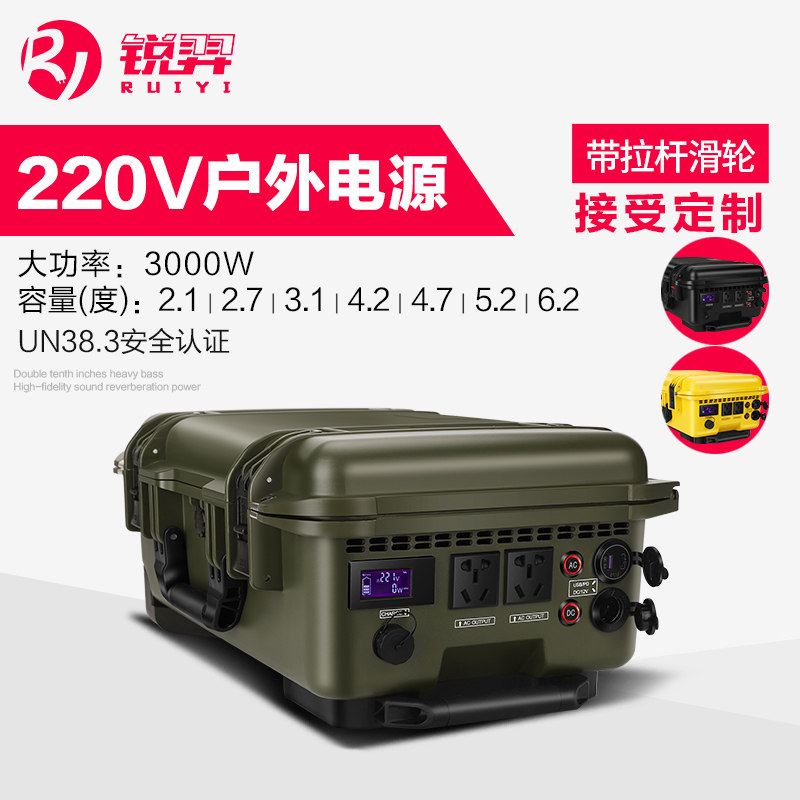 锐羿户外移动电源220v3000W车载便携应急电源大功率大容量房车自驾游野餐露营蓄储能电池停D备用摆摊专用电瓶