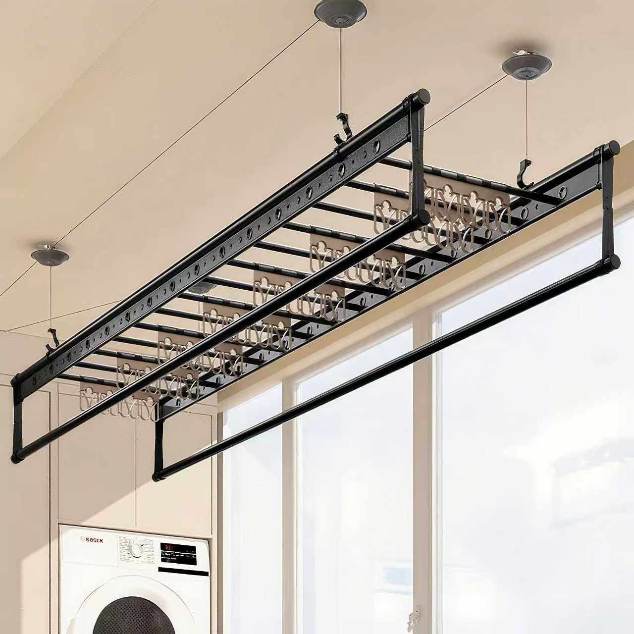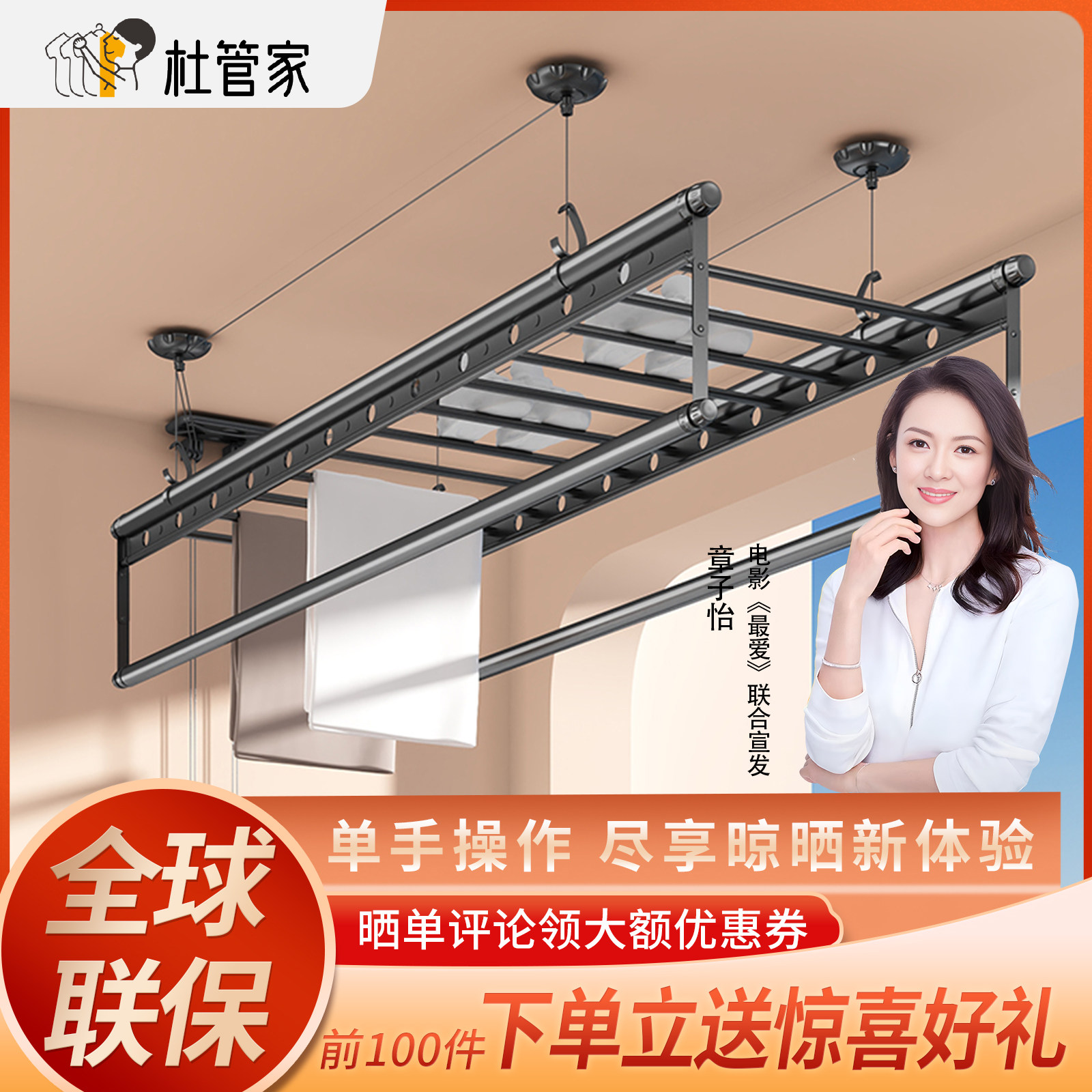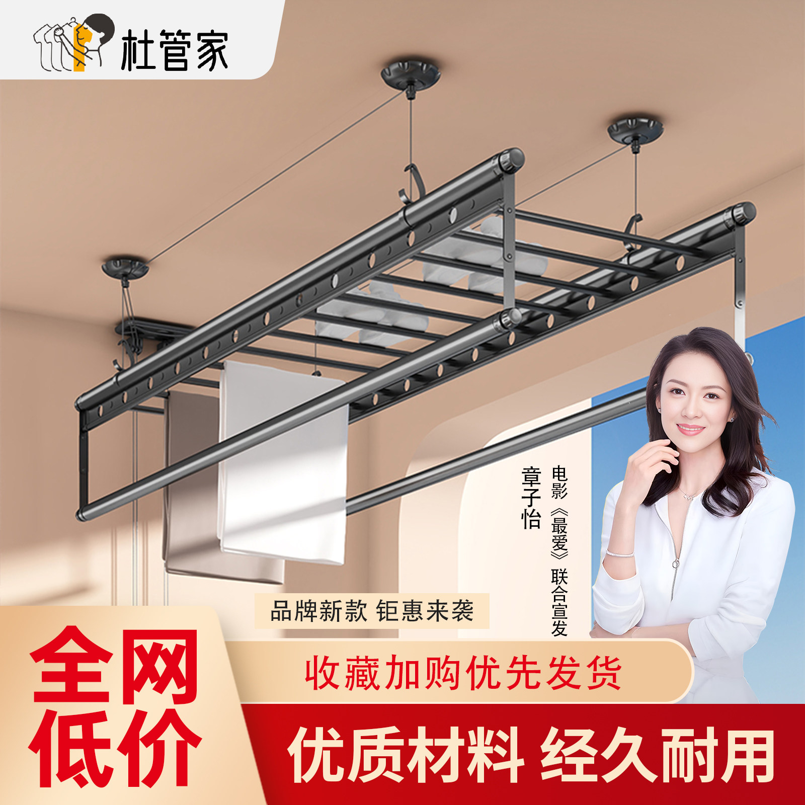 杜管家手摇晾衣架晾衣杆升降双四杆式家用自动晒架室内手动凉衣架
