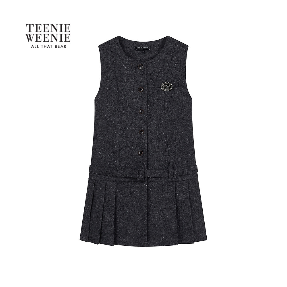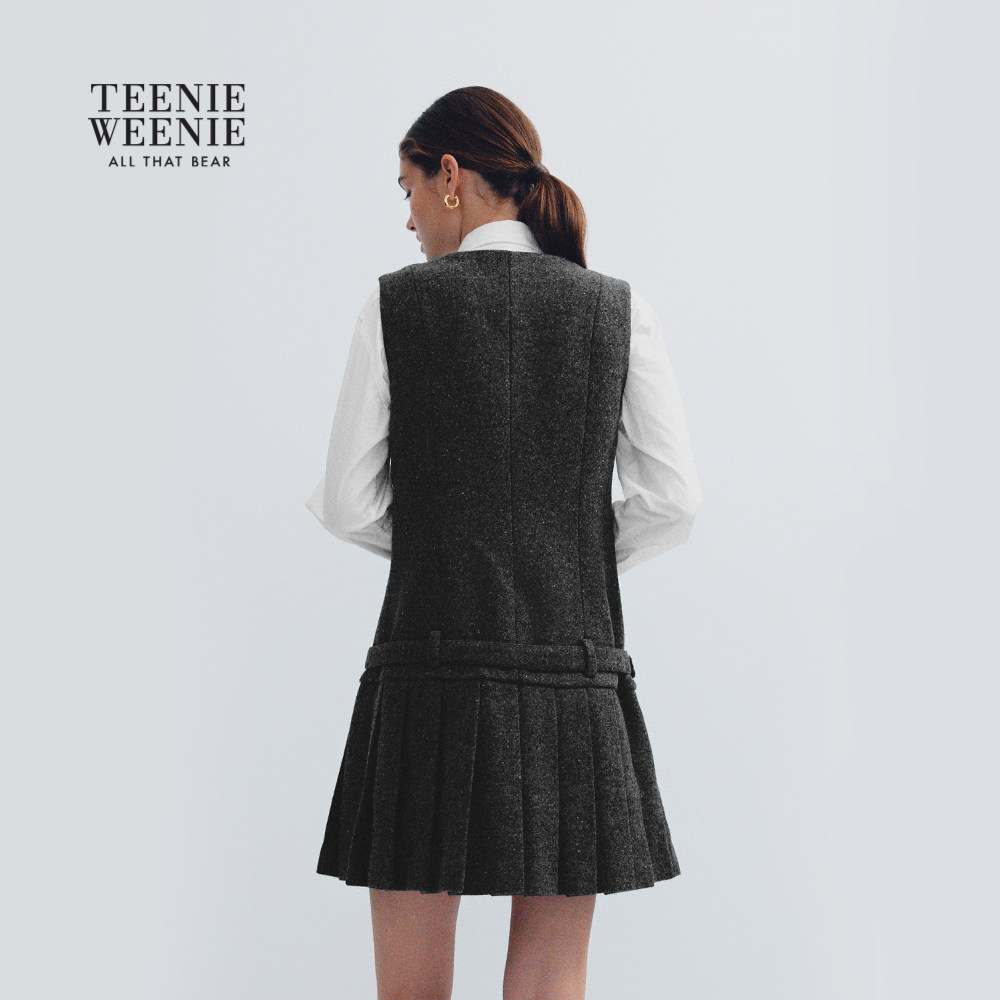 TeenieWeenie小熊女装连衣裙2025冬季新款时髦优雅低腰百褶无袖裙