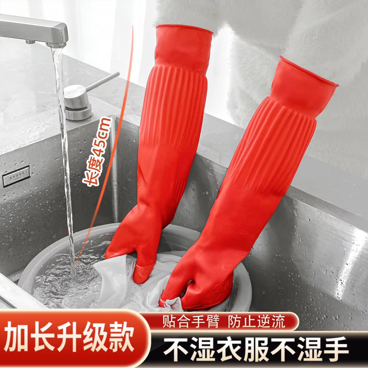 手套加长橡胶防水保暖洗碗加厚加绒女洗衣服长家务厨房胶冬天乳胶
