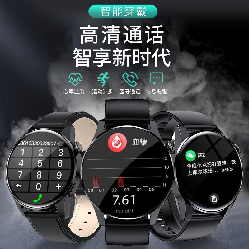 VRST高精度血糖测血压风险评估无创智能手表全天动态心率血氧心电健康睡眠监测量仪尿酸运动蓝牙通话手环老人
