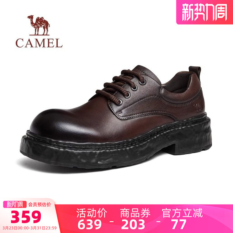 骆驼男鞋皮鞋2026春季新款英伦男士正装商务结婚鞋厚底大头德比鞋