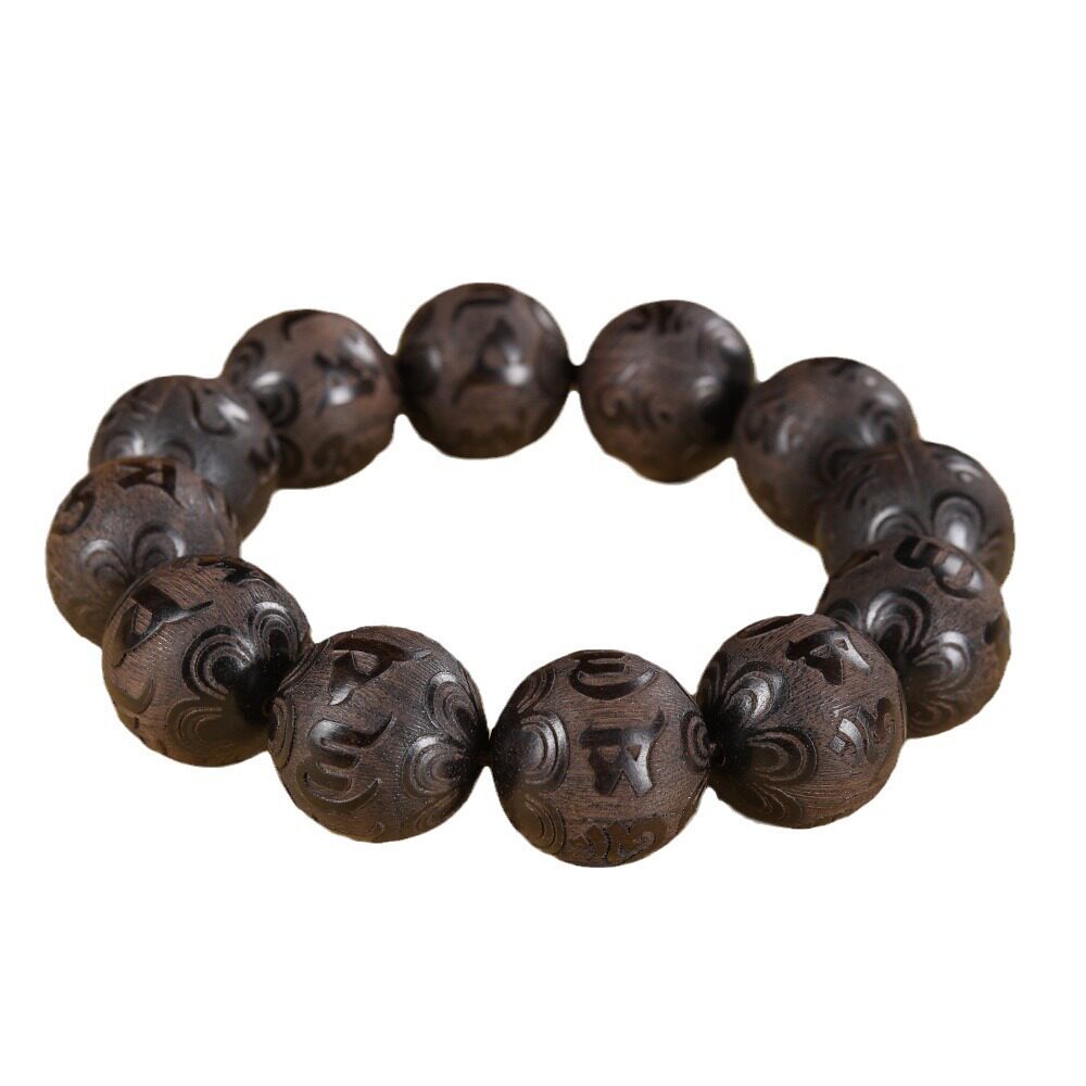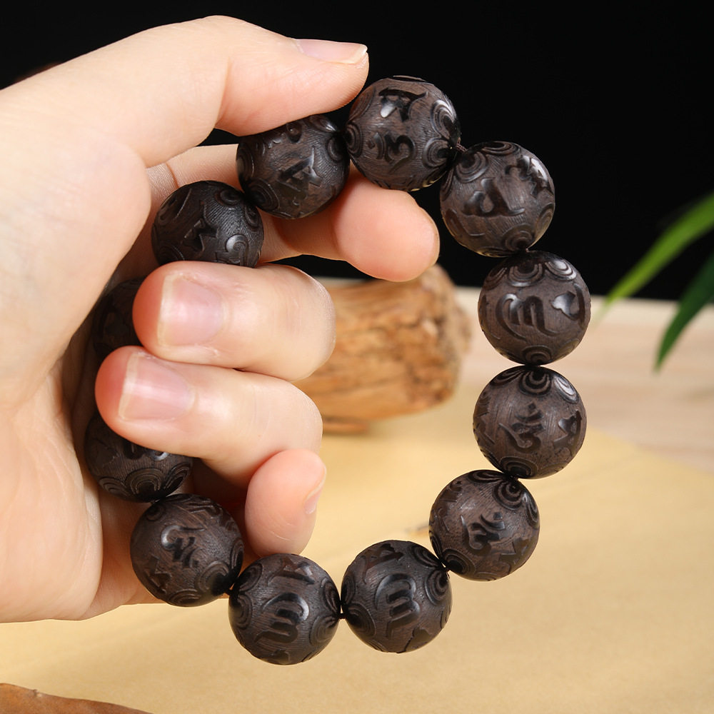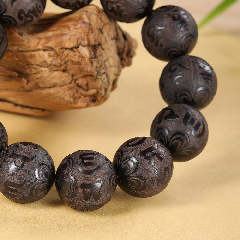 黑檀木雕刻六字真言手串木质佛珠手链20mm男女实木文玩单圈念珠