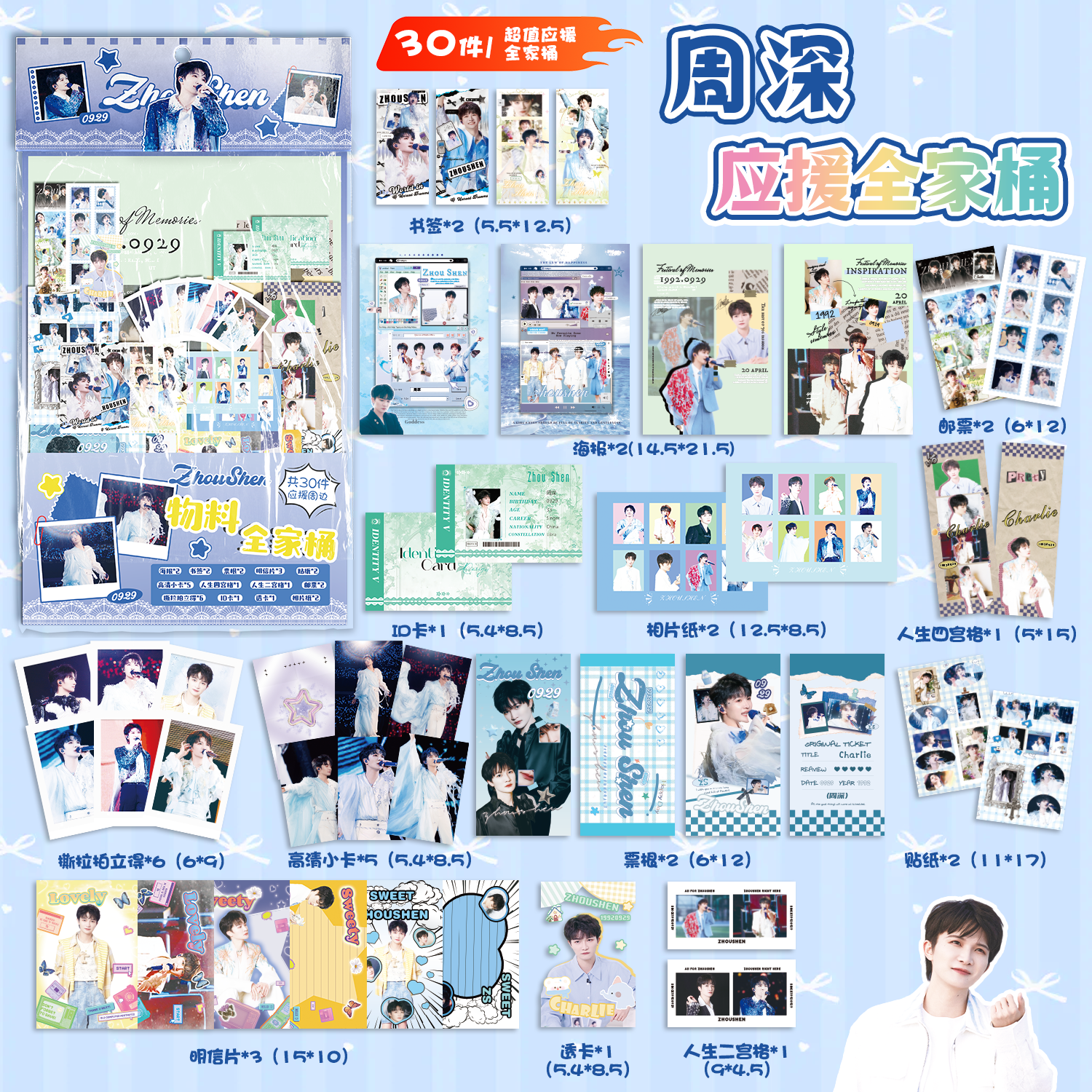 周深应援物料全家桶明星周边同款海报书签镭射小卡明信片30件礼包