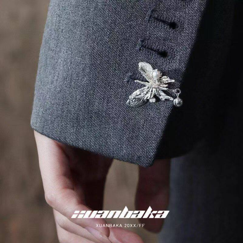 新中式立体蝴蝶袖扣2026新款国风清冷氛围感设计小众时尚西装配饰