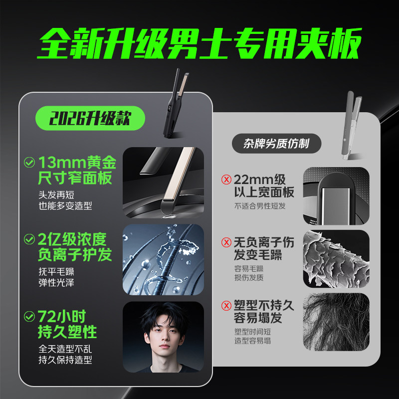 扬子夹板男生专用卷发棒直板夹男士负离子烫发夹蓬松宿舍神器两用