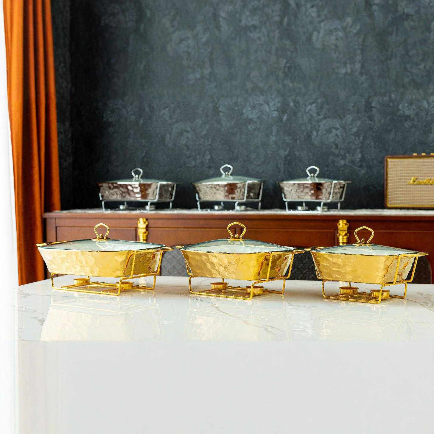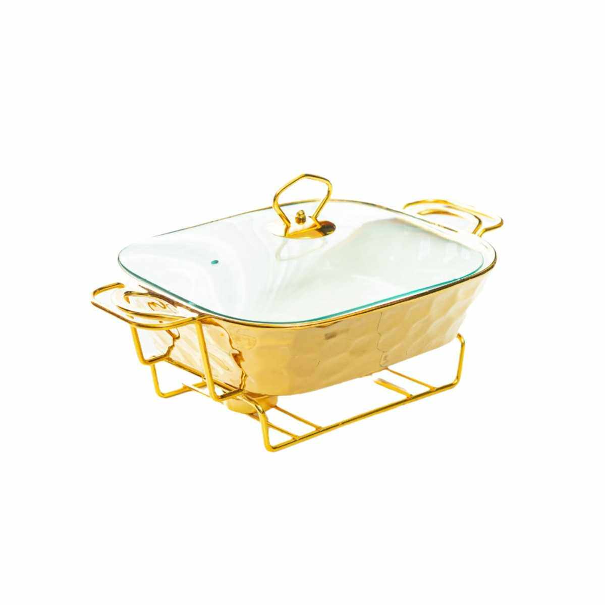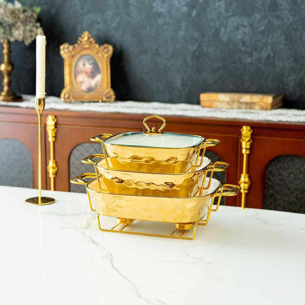 casserole金色石头纹烤盘长方形陶瓷烤盘加热干汤锅bake ware
