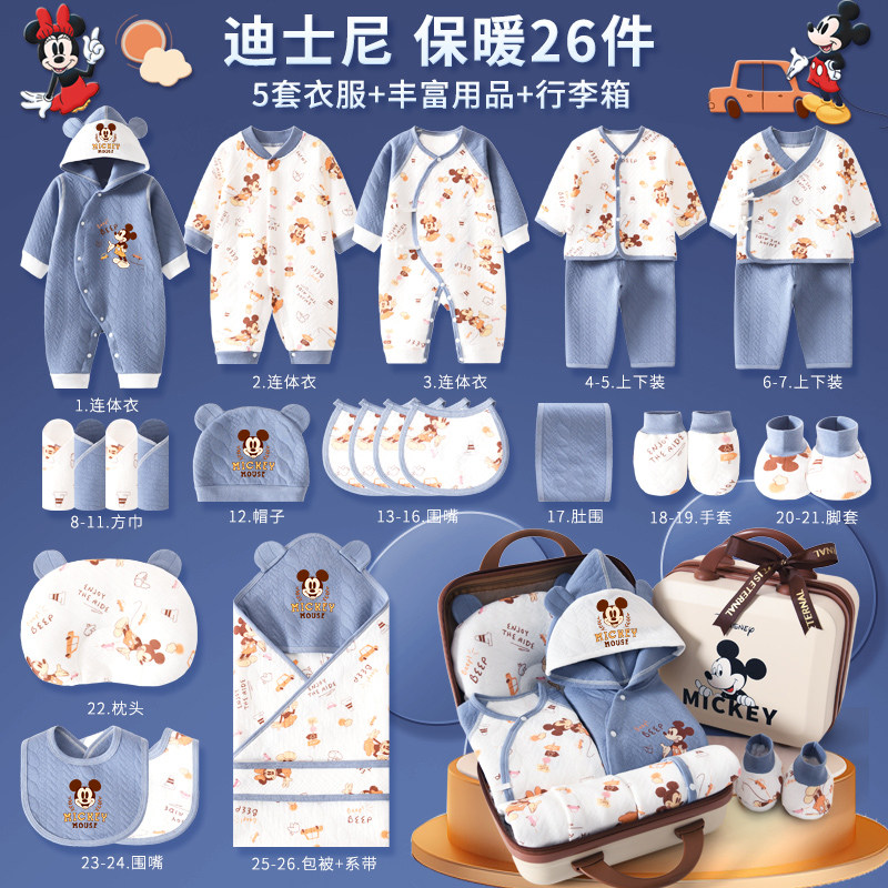 迪士尼婴儿礼盒秋冬季新生儿衣服男女宝宝套装满月送礼物用品大全