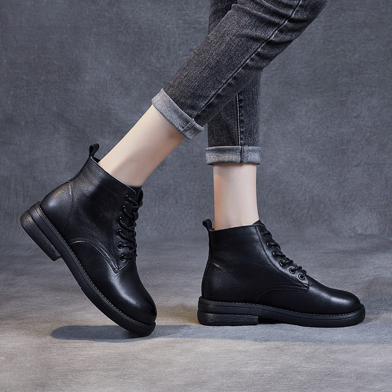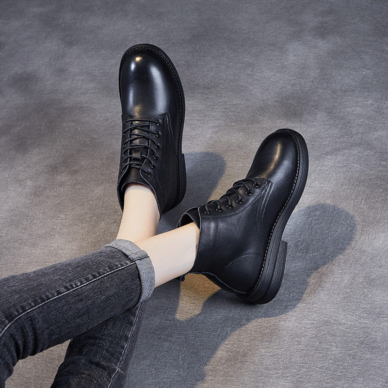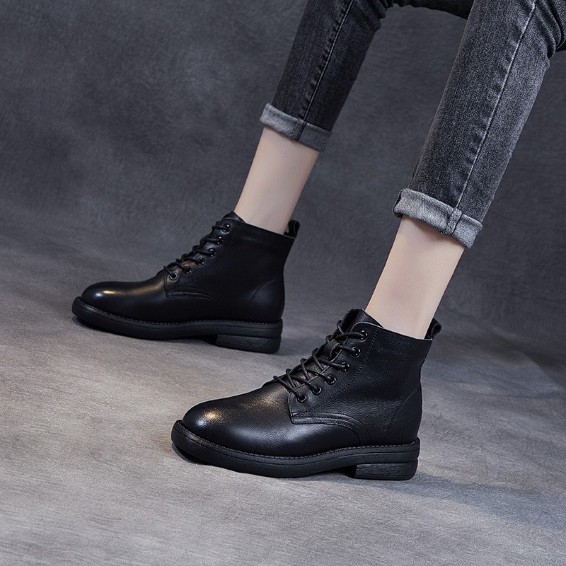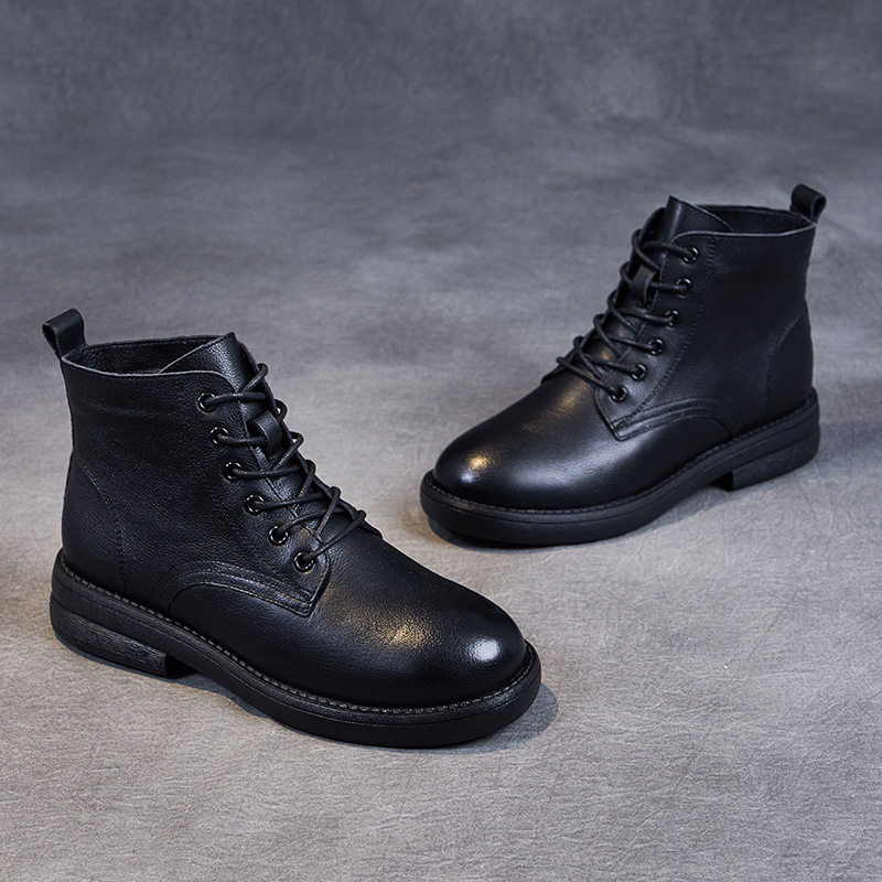 欧洲站真皮矮帮马丁靴女2025新款秋冬平跟百搭低帮女靴软底牛皮英