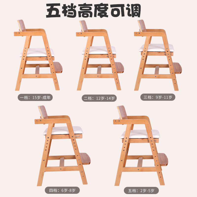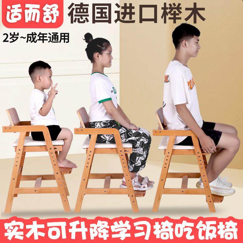 儿童学习椅家用宝宝餐椅实木座椅可升降多功能小学生靠背写字椅子