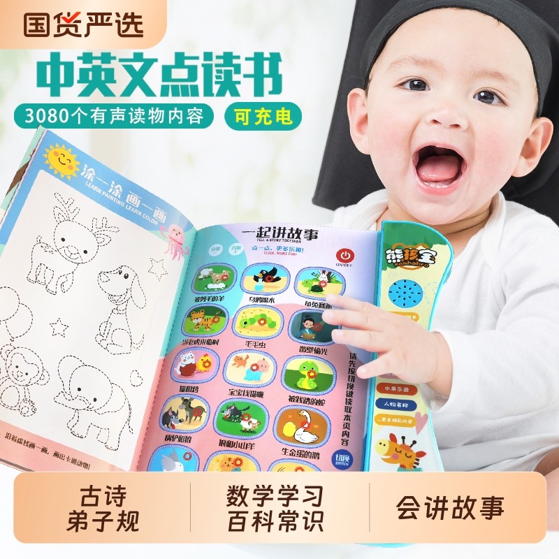 儿童有声插卡早教机中英双语识字卡唐诗三百首幼儿0到3益智玩具