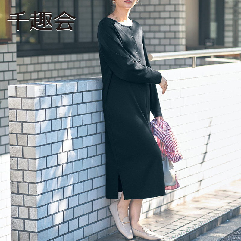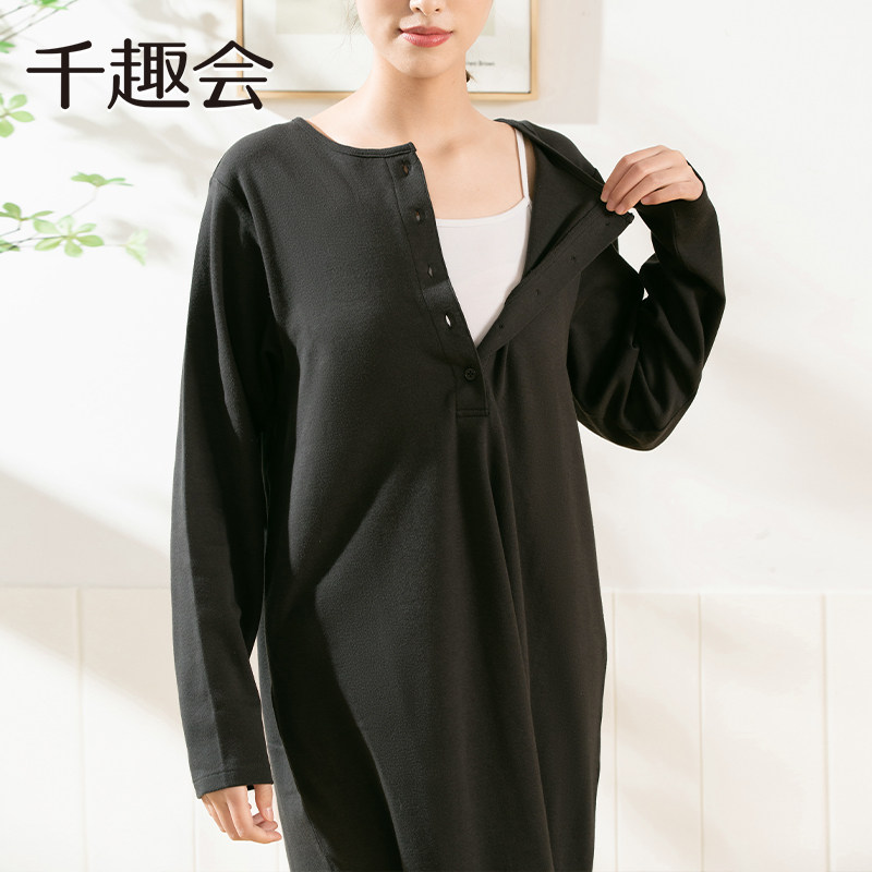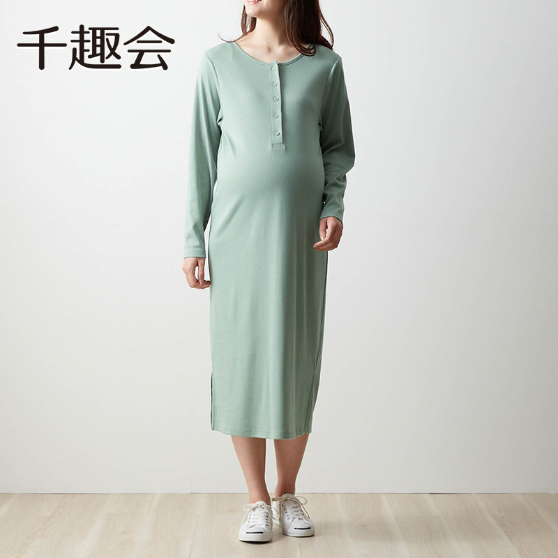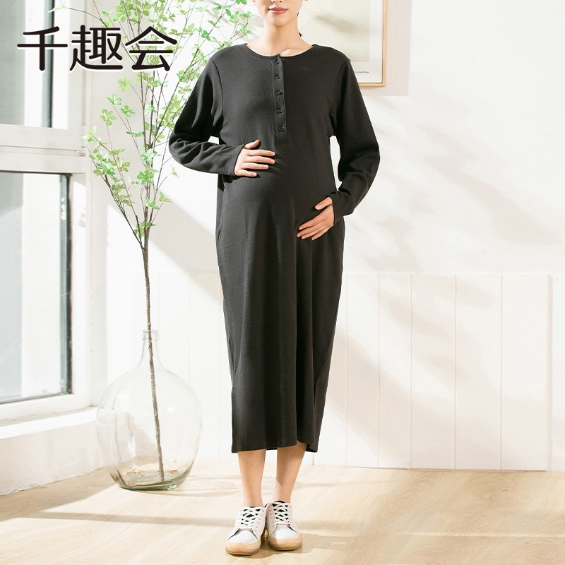 千趣会孕妇装春秋款连衣裙产后方便哺乳装全棉针织时尚孕妈长裙子