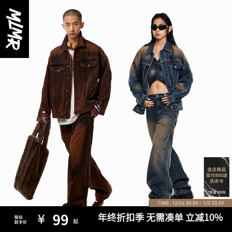 MLMR男装新款宽松情侣夹克上衣渐变拼接水洗时尚个性牛仔外套秋季