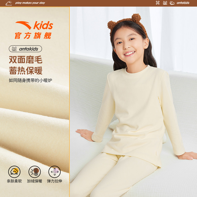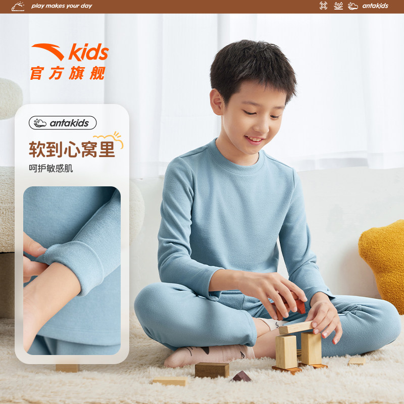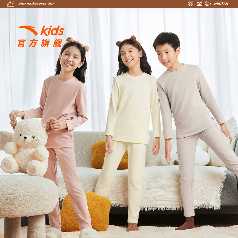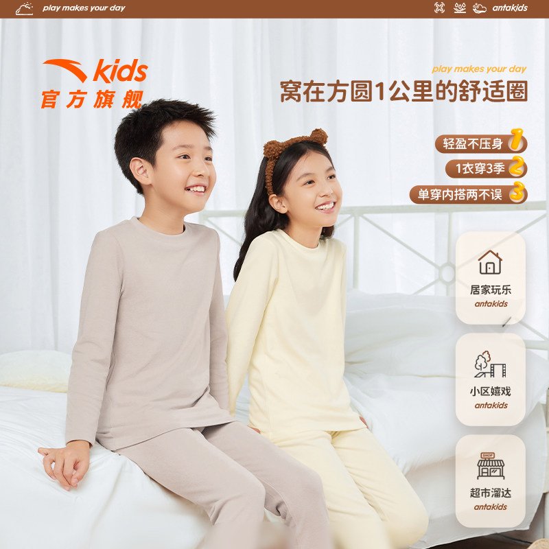 安踏儿童睡衣男童家居服套装女童2025秋装长袖长裤薄绒打底衫套装