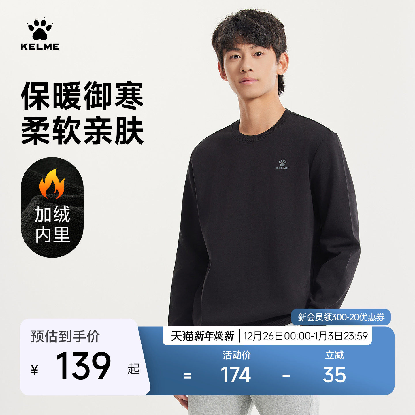 KELME卡尔美运动卫衣秋冬季加绒新款上衣情侣纯色圆领男长袖休闲