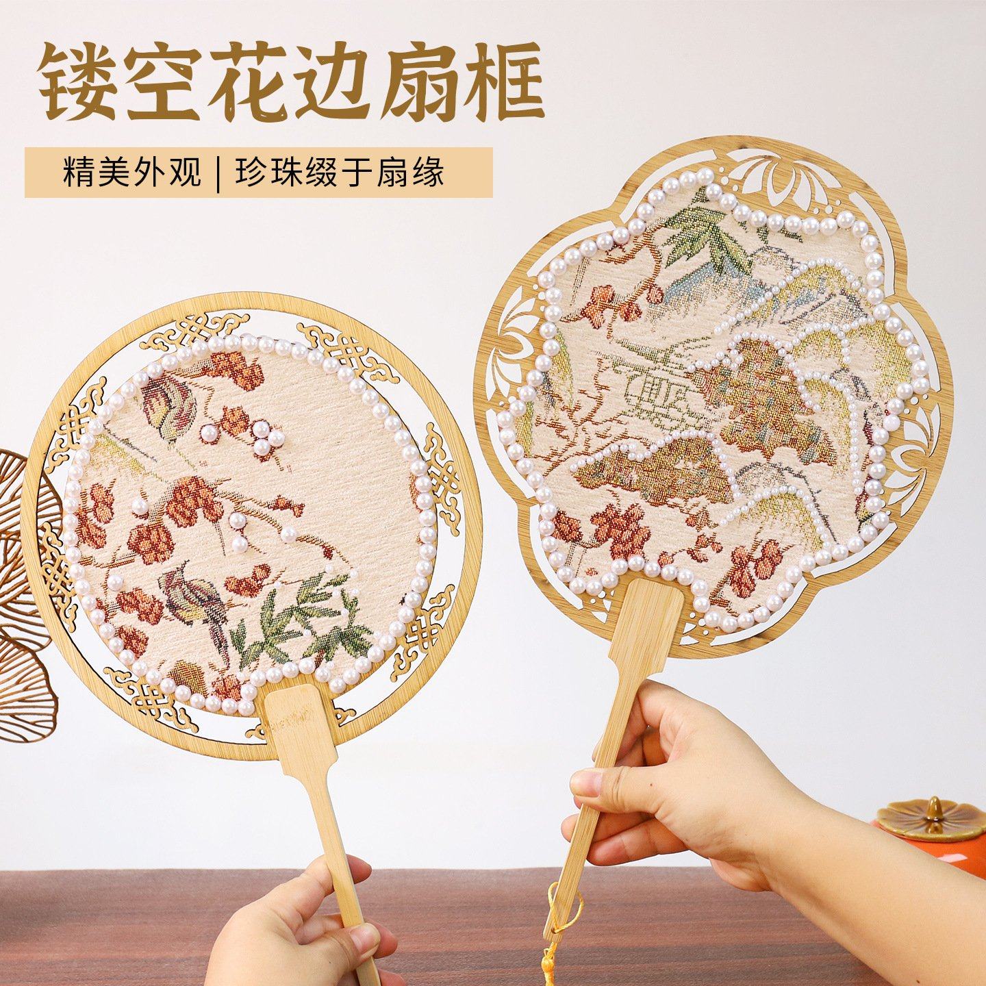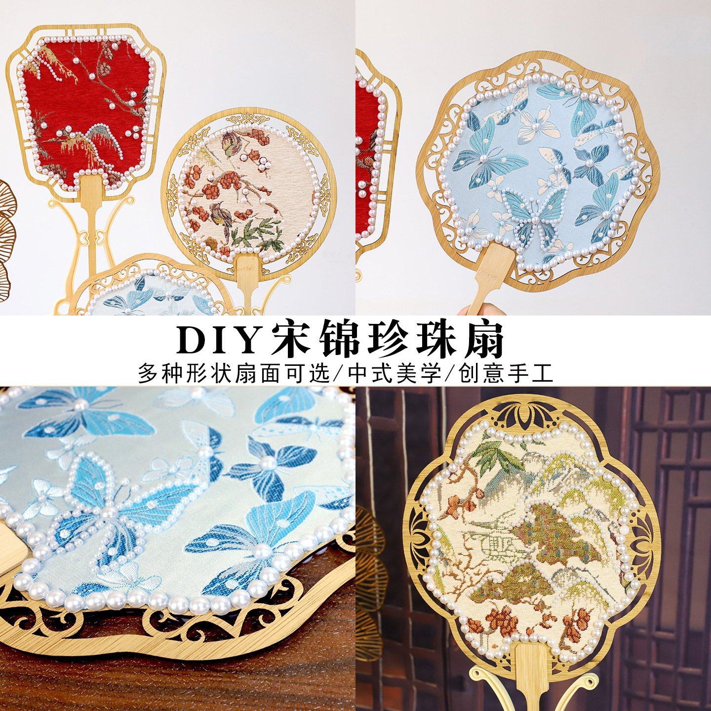 宋锦珍珠扇diy手工材料包双面珍珠扇古风中国风沙龙团扇团建SW69