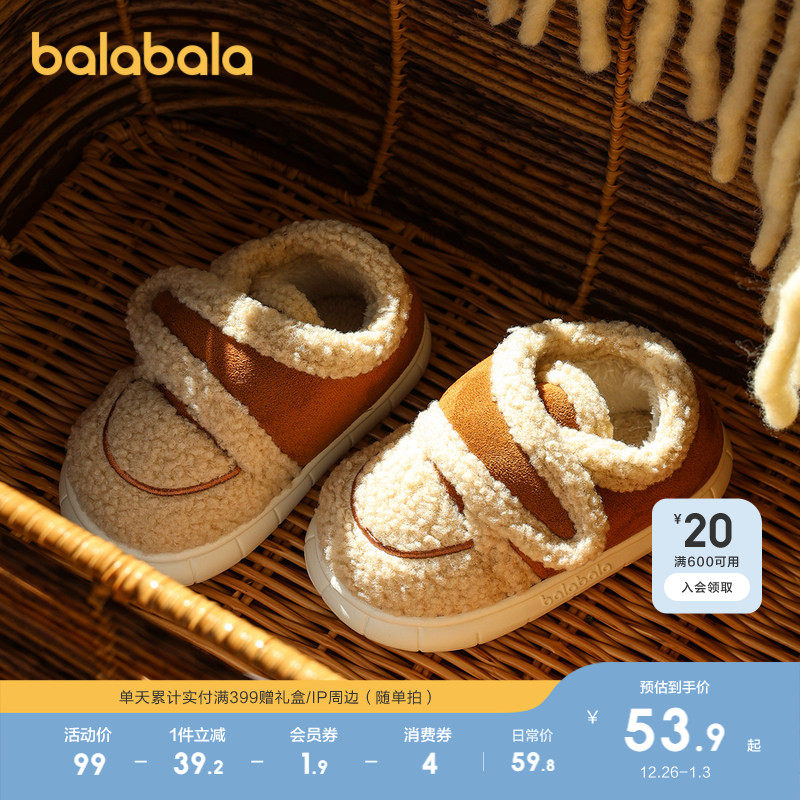 巴拉巴拉童鞋儿童秋冬棉拖鞋男女童家居鞋保暖魔术贴设计包跟棉鞋
