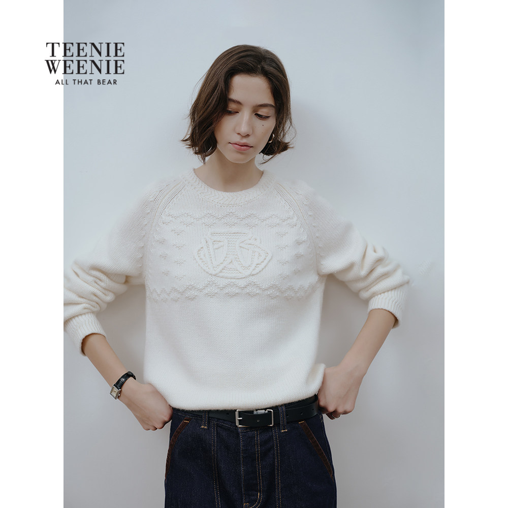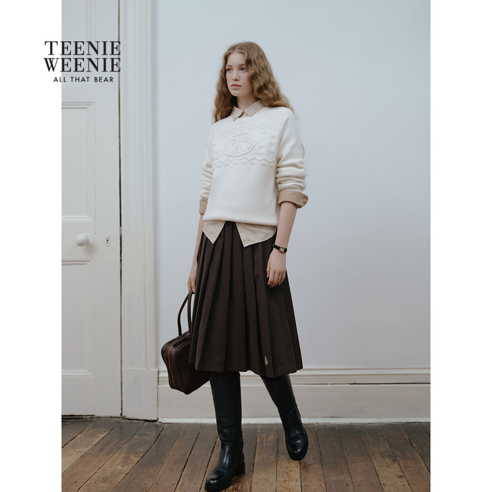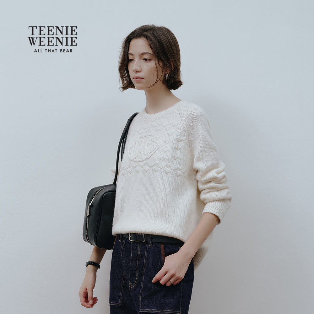 TeenieWeenie小熊女装毛针织衫2025冬季新款基础简约休闲圆领毛衣
