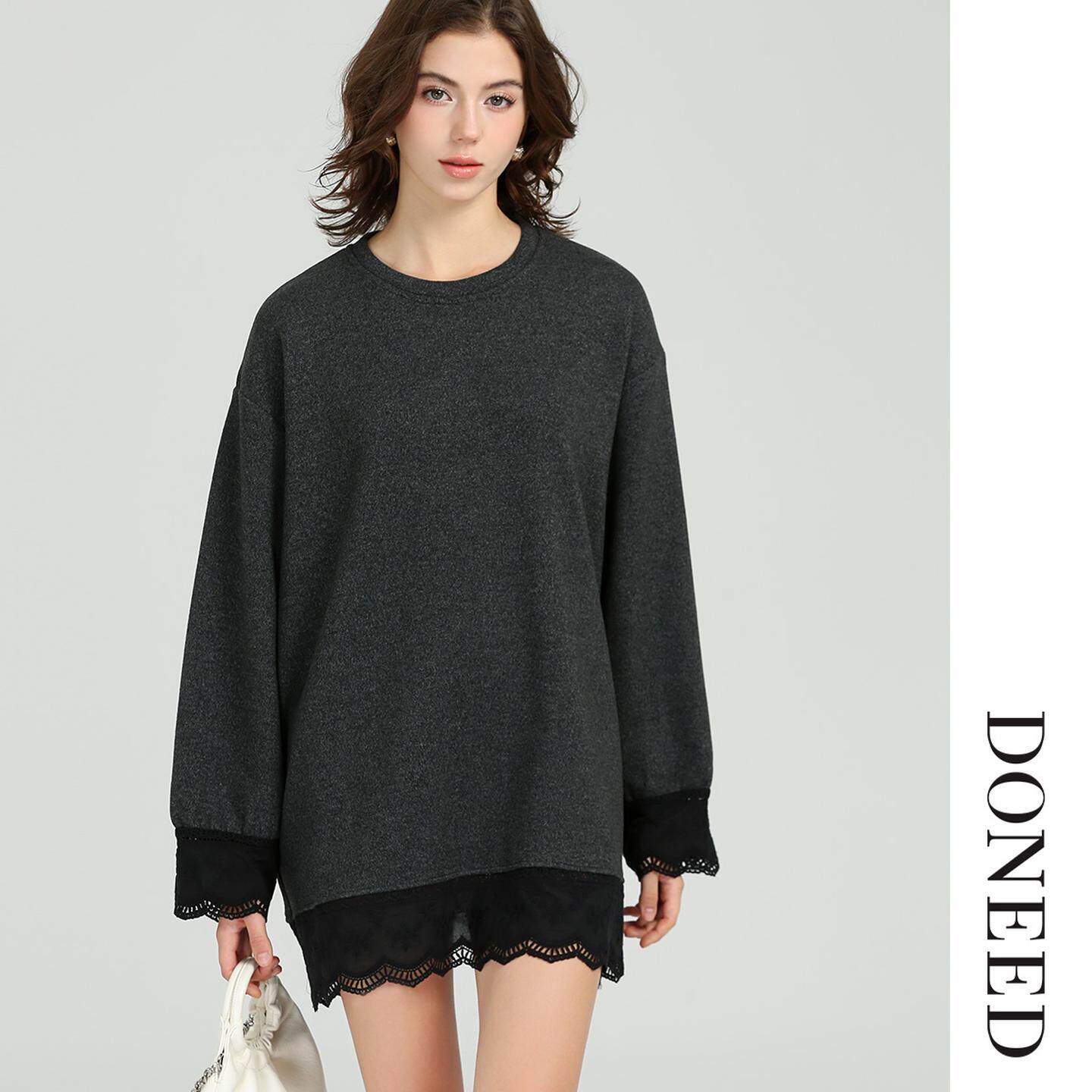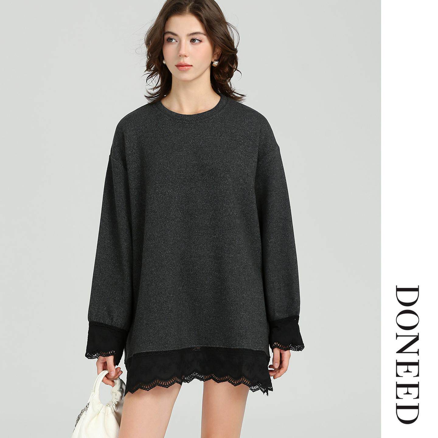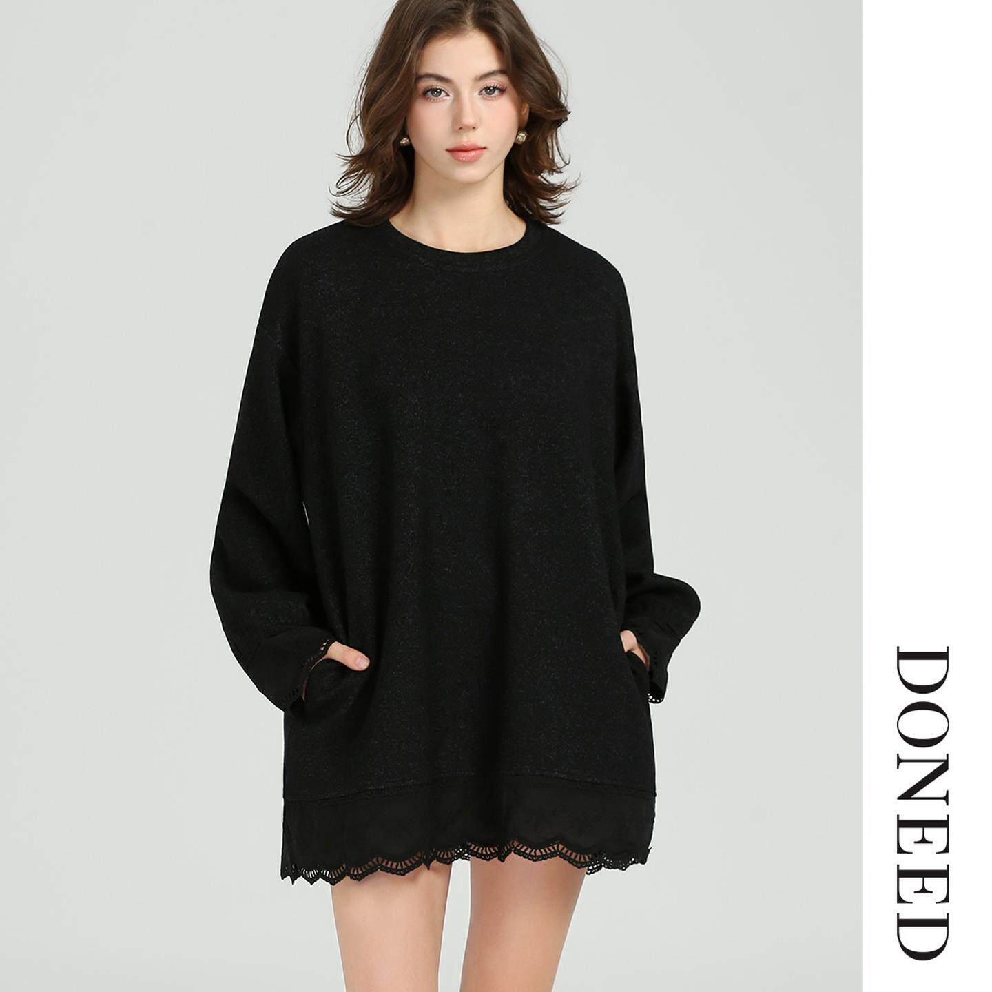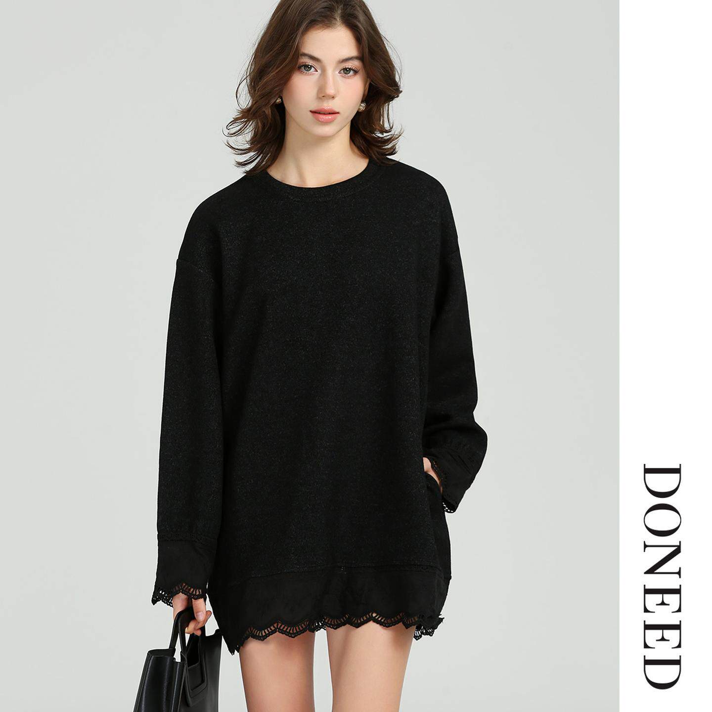 DONEED2025秋冬新款法式优雅休闲长袖针织宽松显瘦连衣裙女
