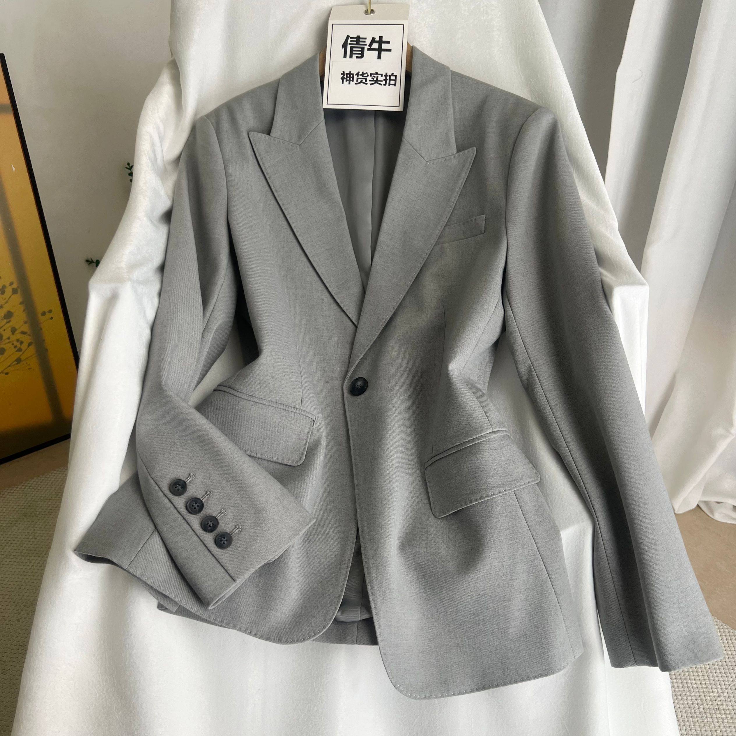 灰色西装外套女春秋高级感韩版宽松大码oversize休闲小个子西服装