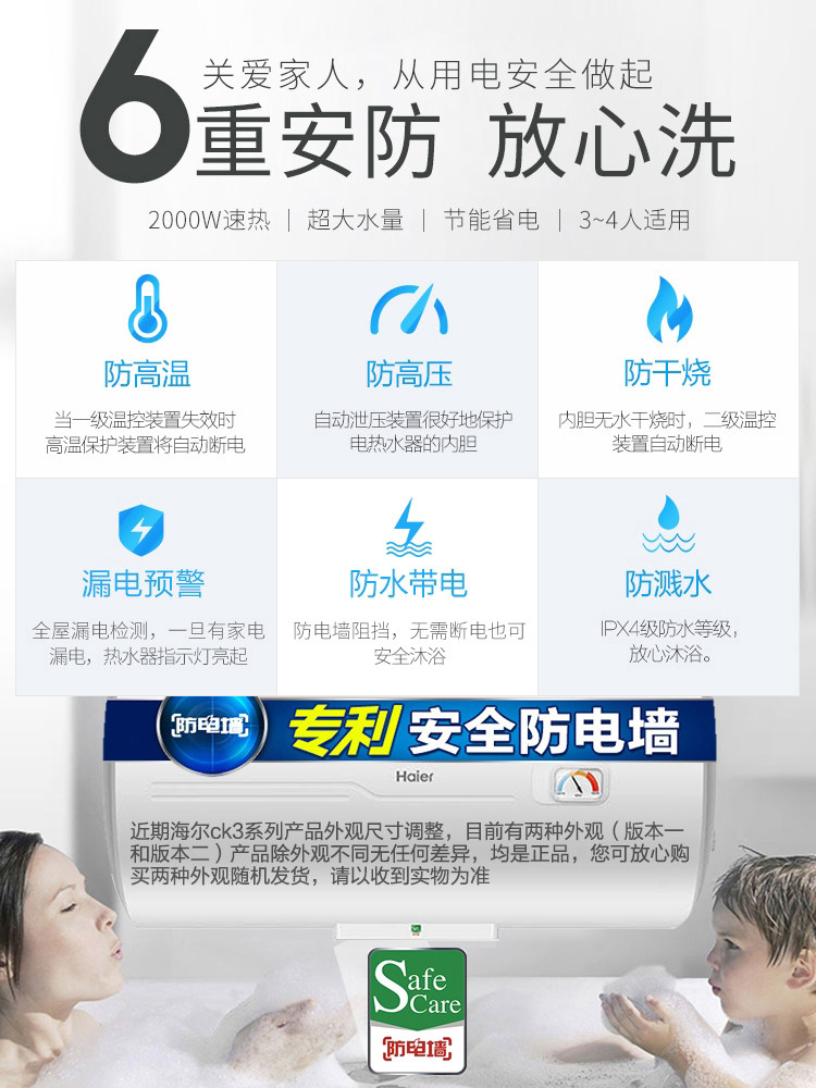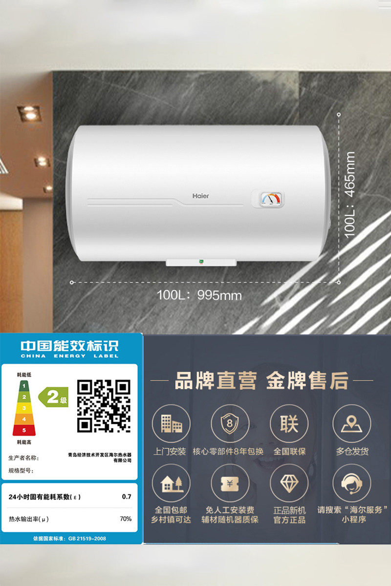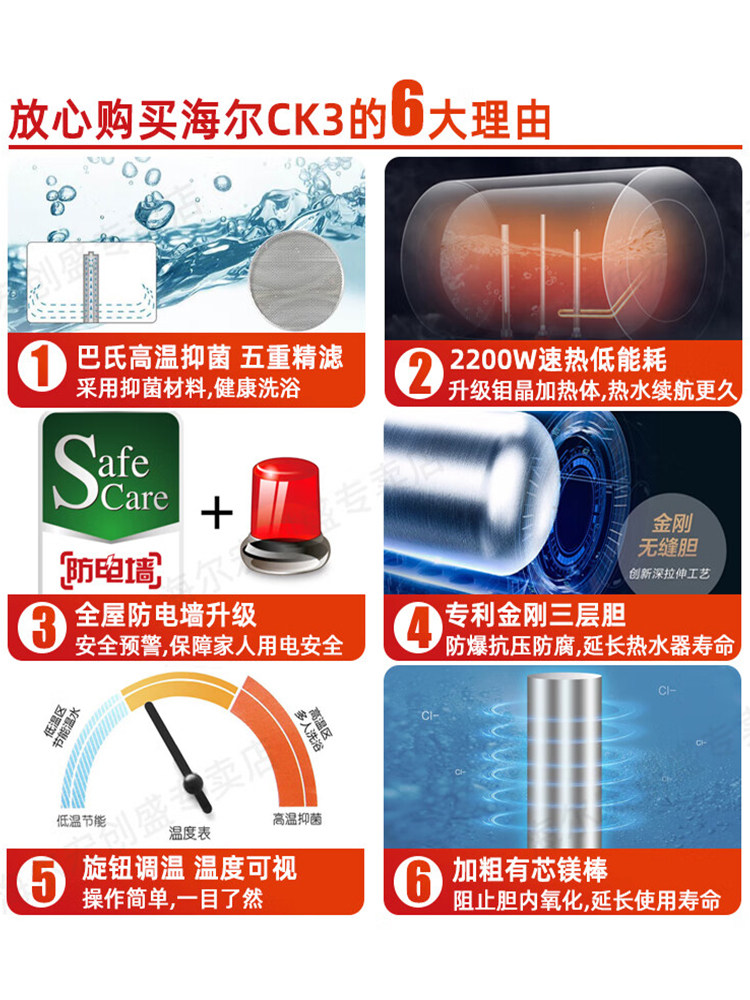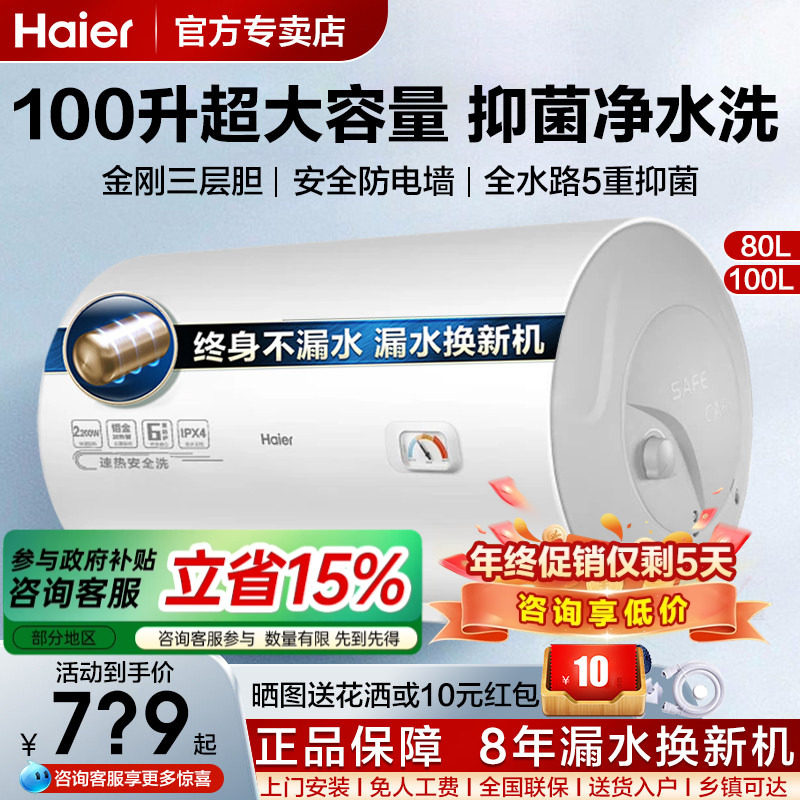 Z海尔电热水器电家用洗澡100升大容量60L80升节能储水式CK3官方店