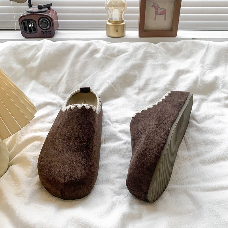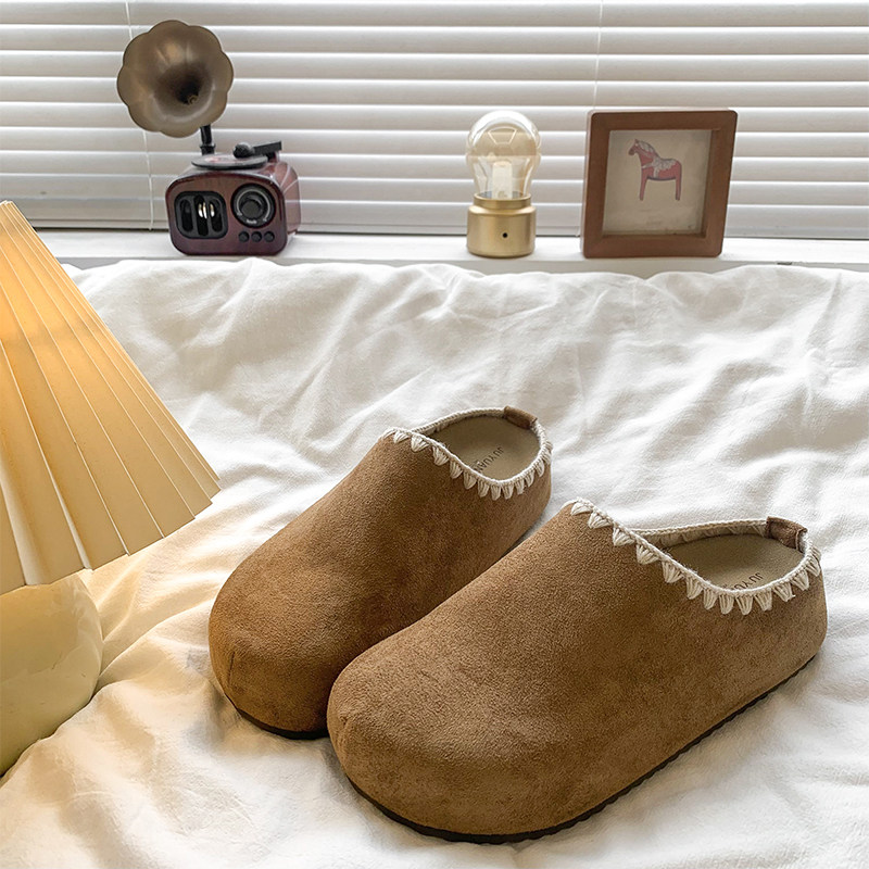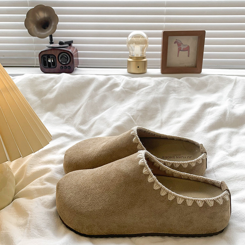 叁叔家~内增高勃肯鞋女加绒秋冬保暖毛毛半拖外穿厚底博肯鞋