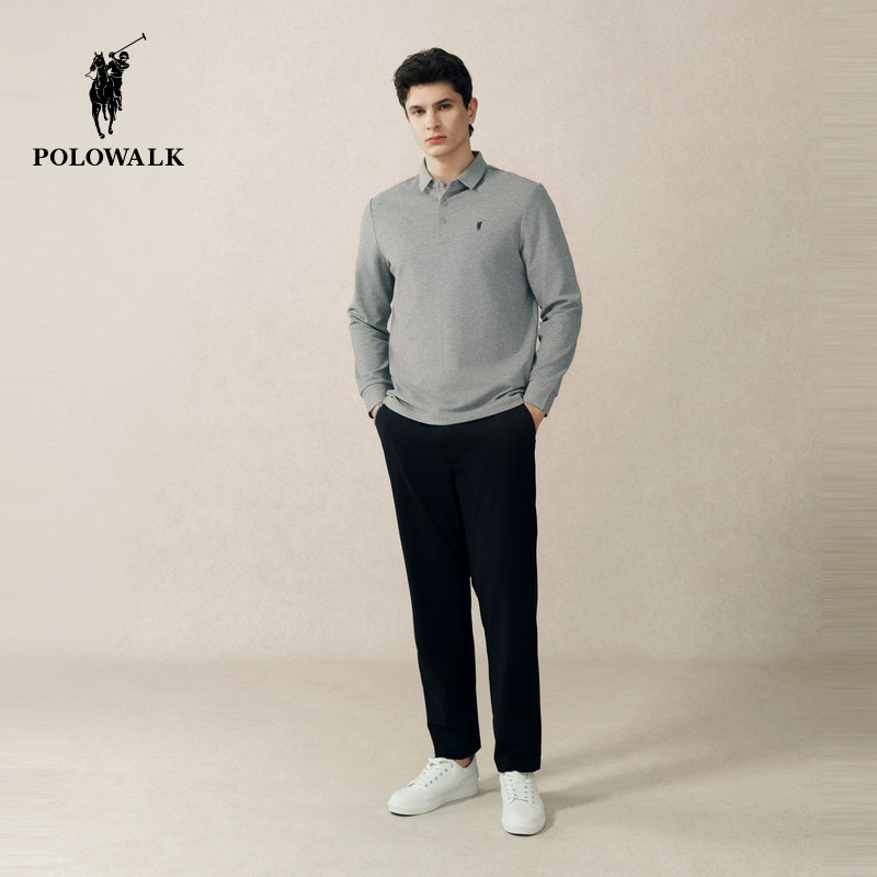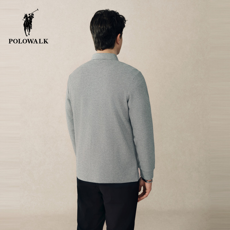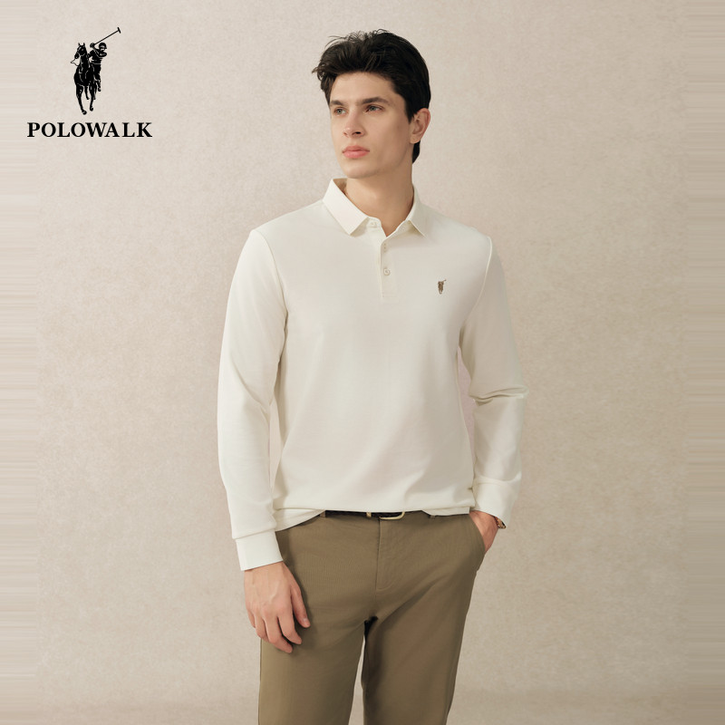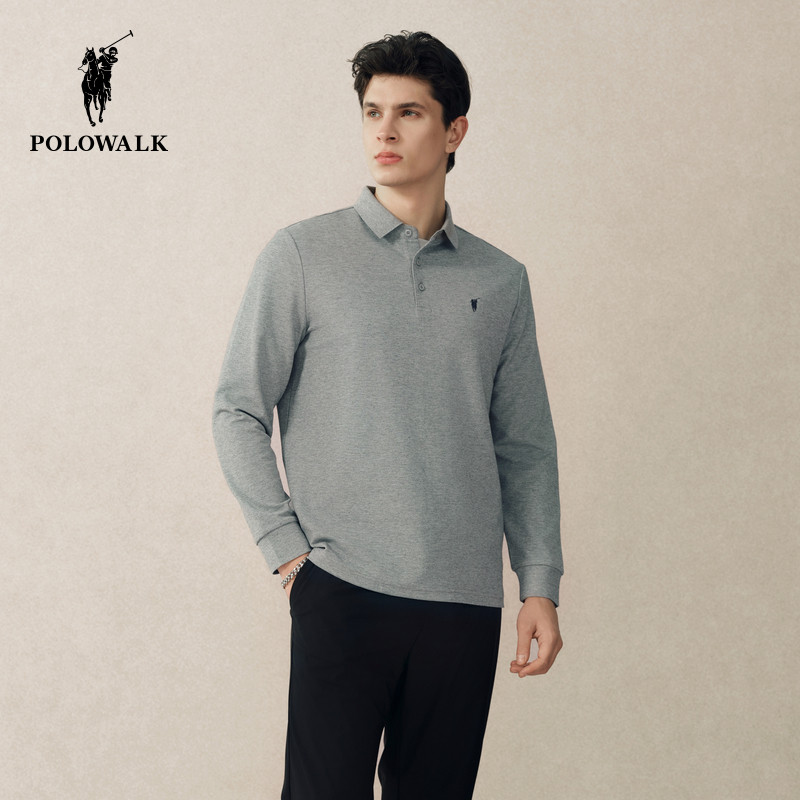 【7A抗菌】POLOWALK男式POLO长袖T恤2025秋冬新品纯色刺绣百搭潮