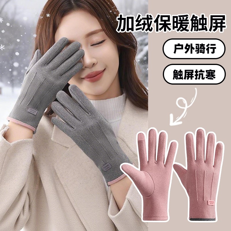 手套秋冬天女加绒保暖可爱德绒女士骑行防寒骑车防风触屏