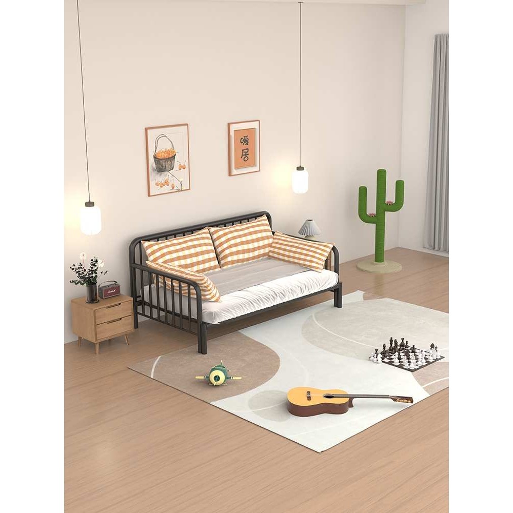 ?折叠铁艺沙发床两用可抽拉伸缩铁床现代简约小户型客厅书房罗汉
