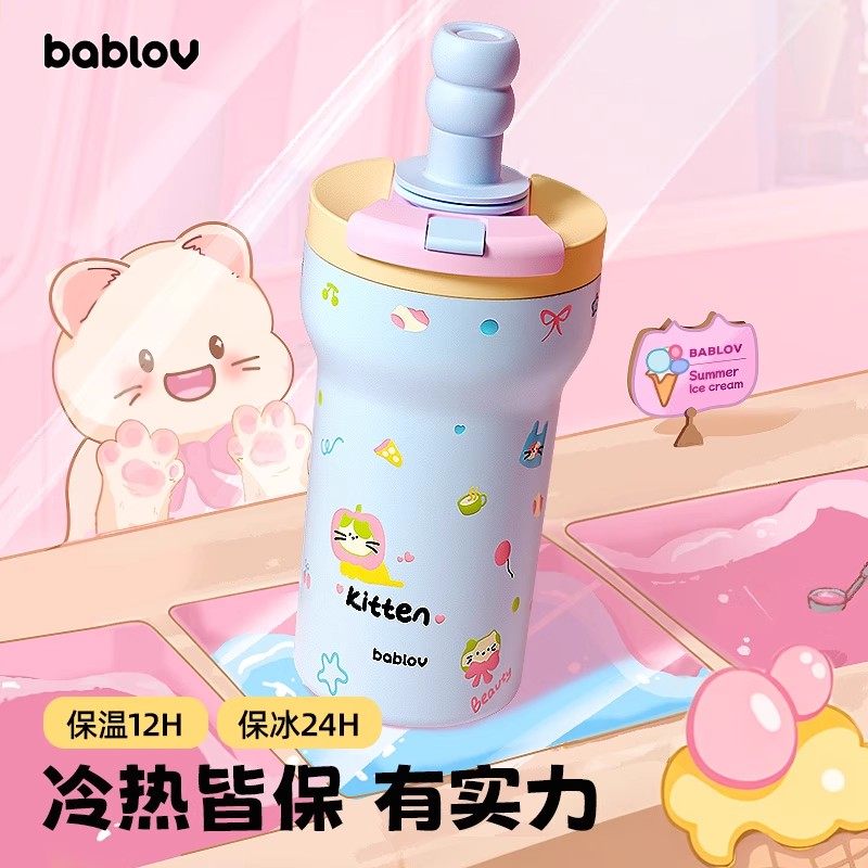 bablov玻璃内胆保温杯女生直饮咖啡杯高颜值吸管水杯夏日保冷杯子