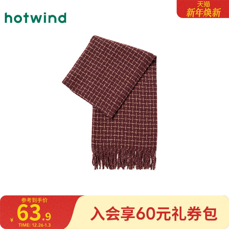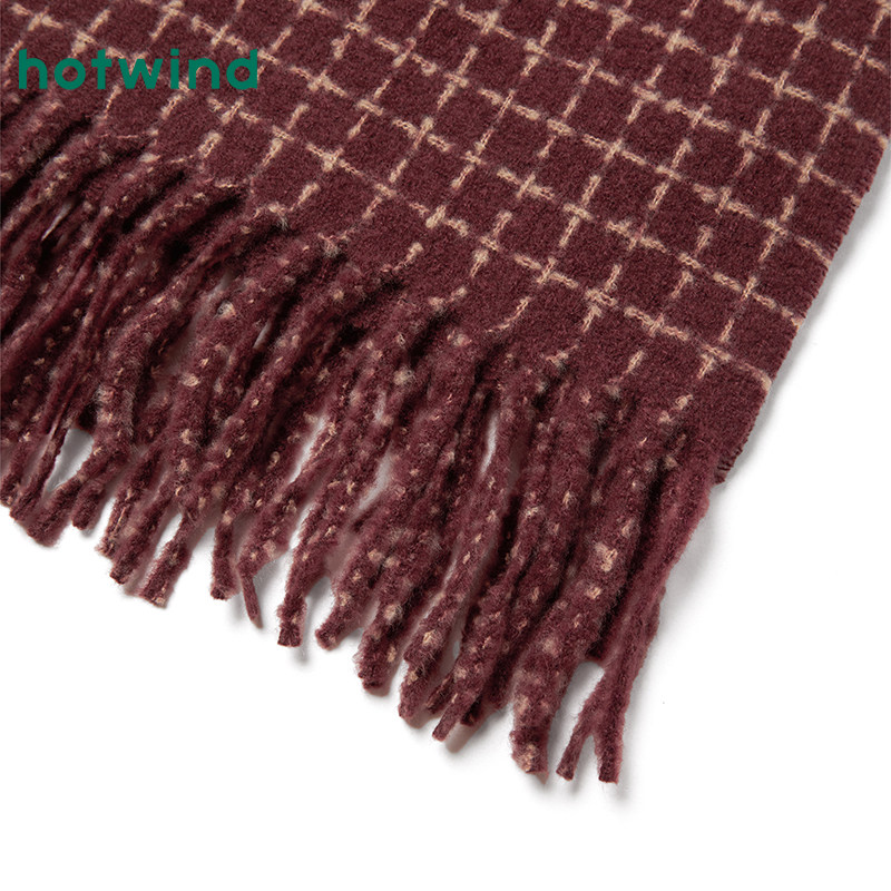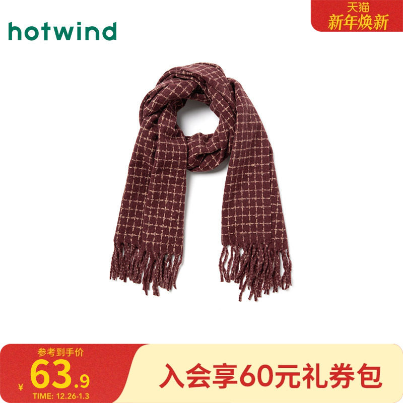 热风2025年冬季新款女士韩系学院风小格子梭织围巾