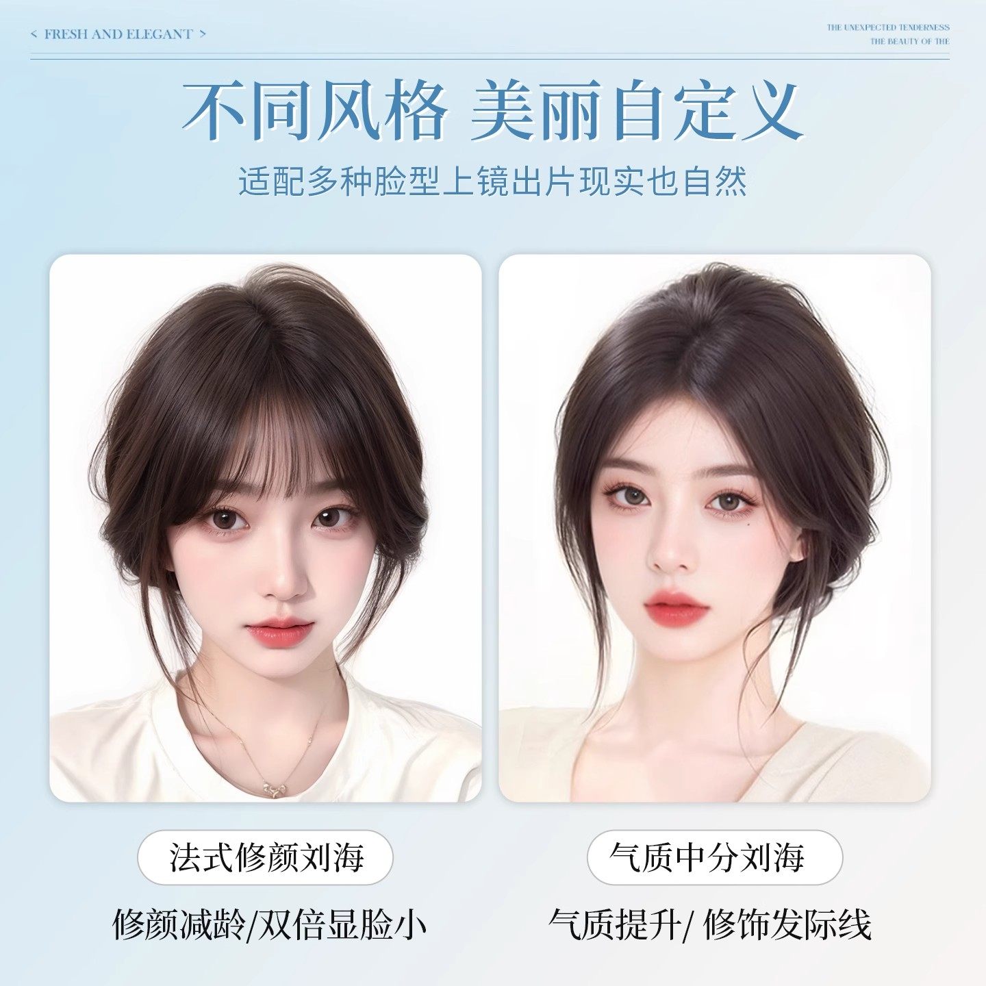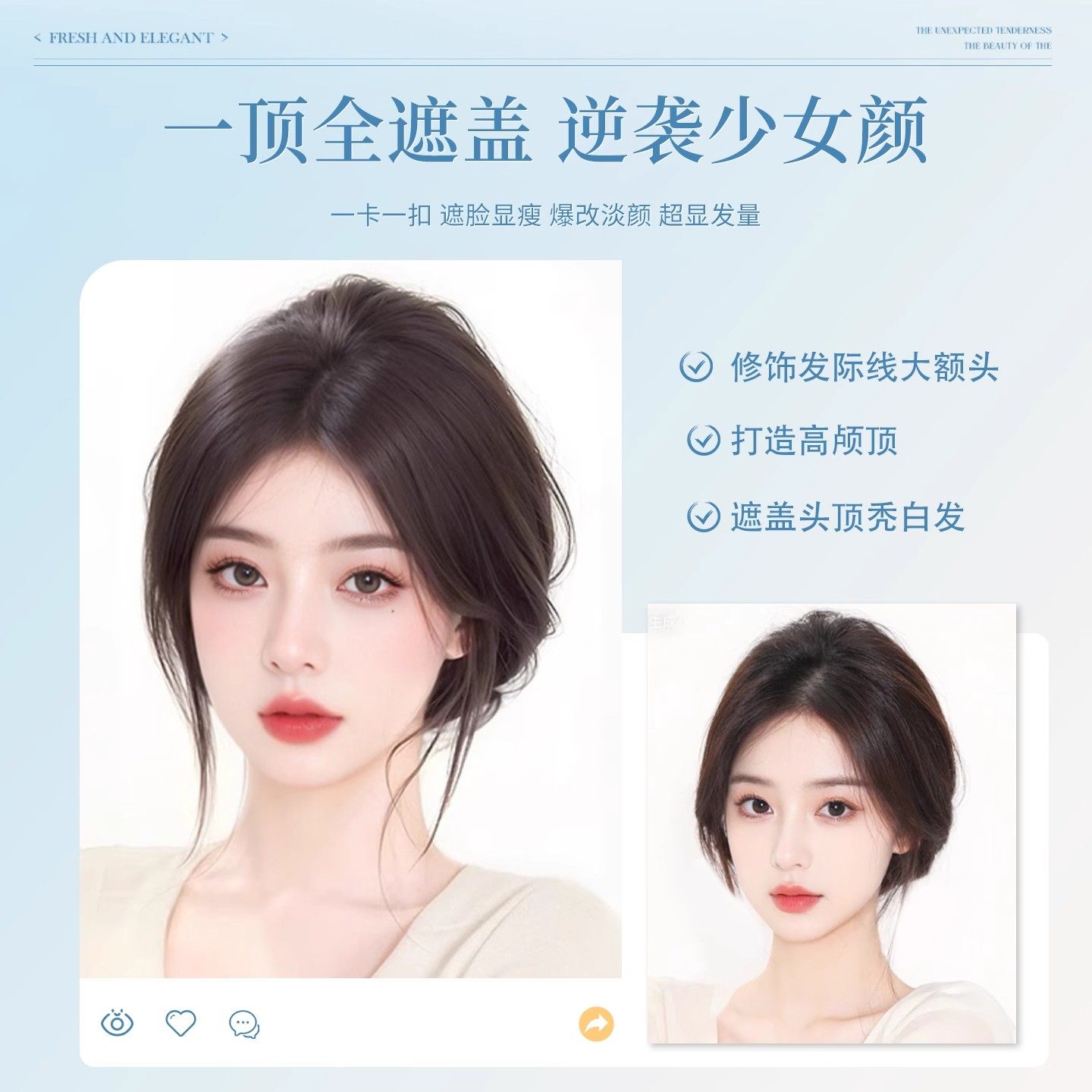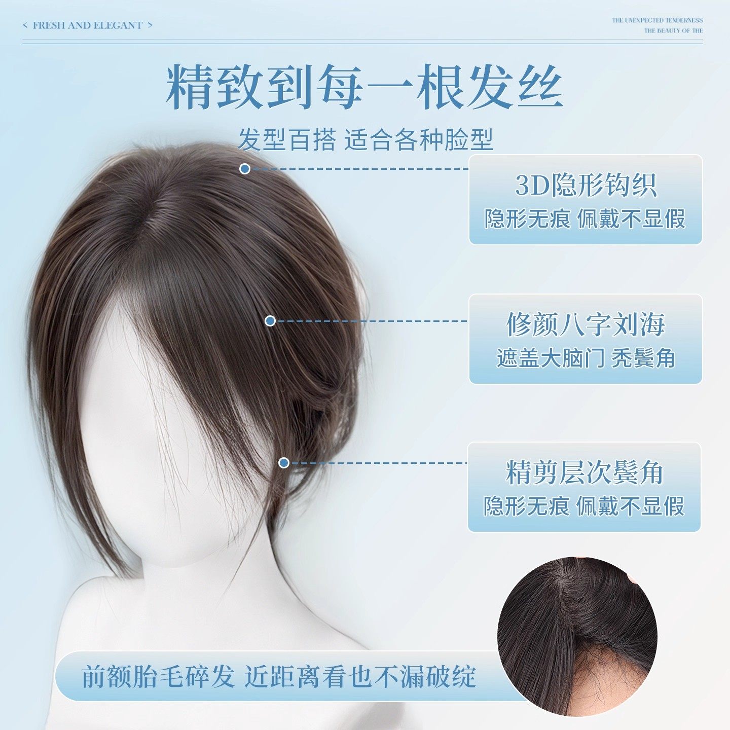 八字刘海假发女片头顶自然前额仿真发无痕增发量蓬松高颅顶假发片