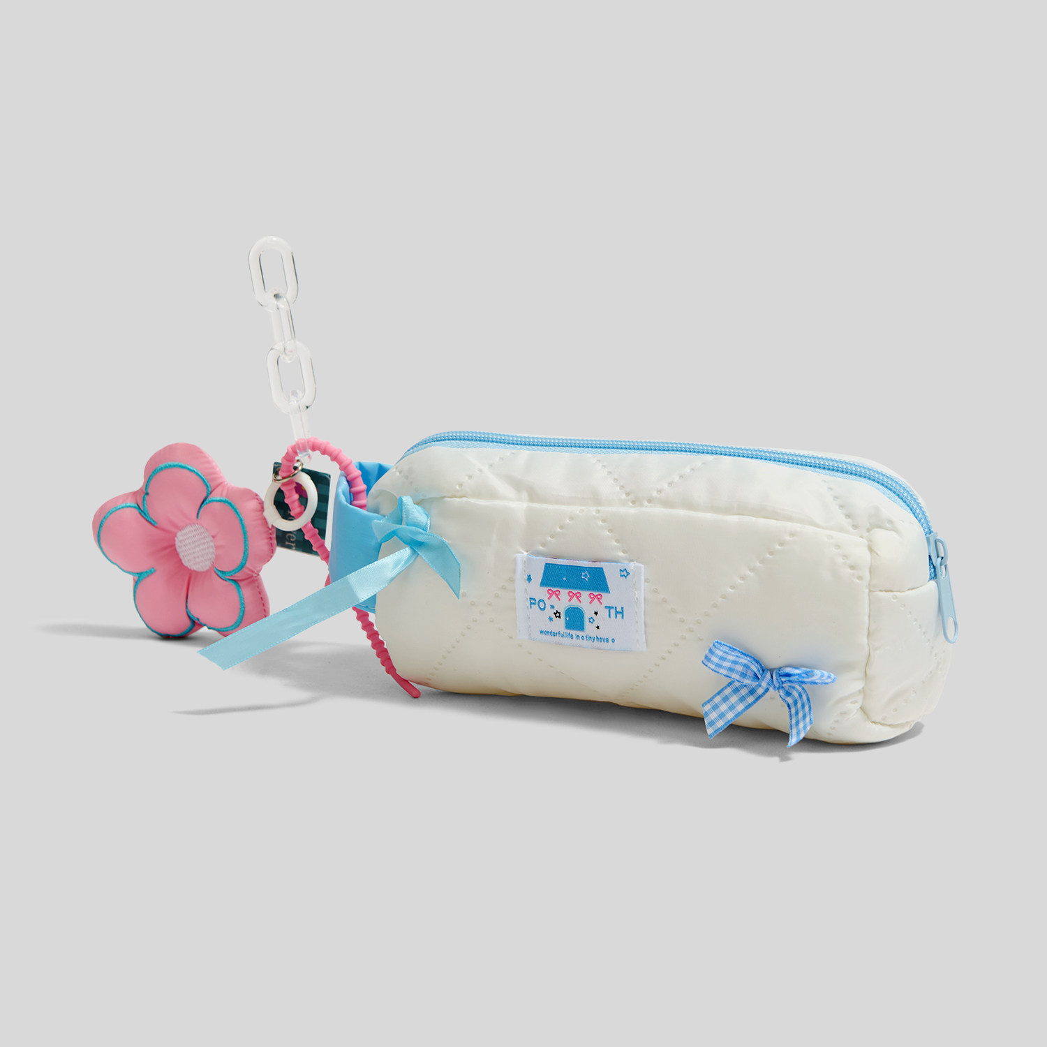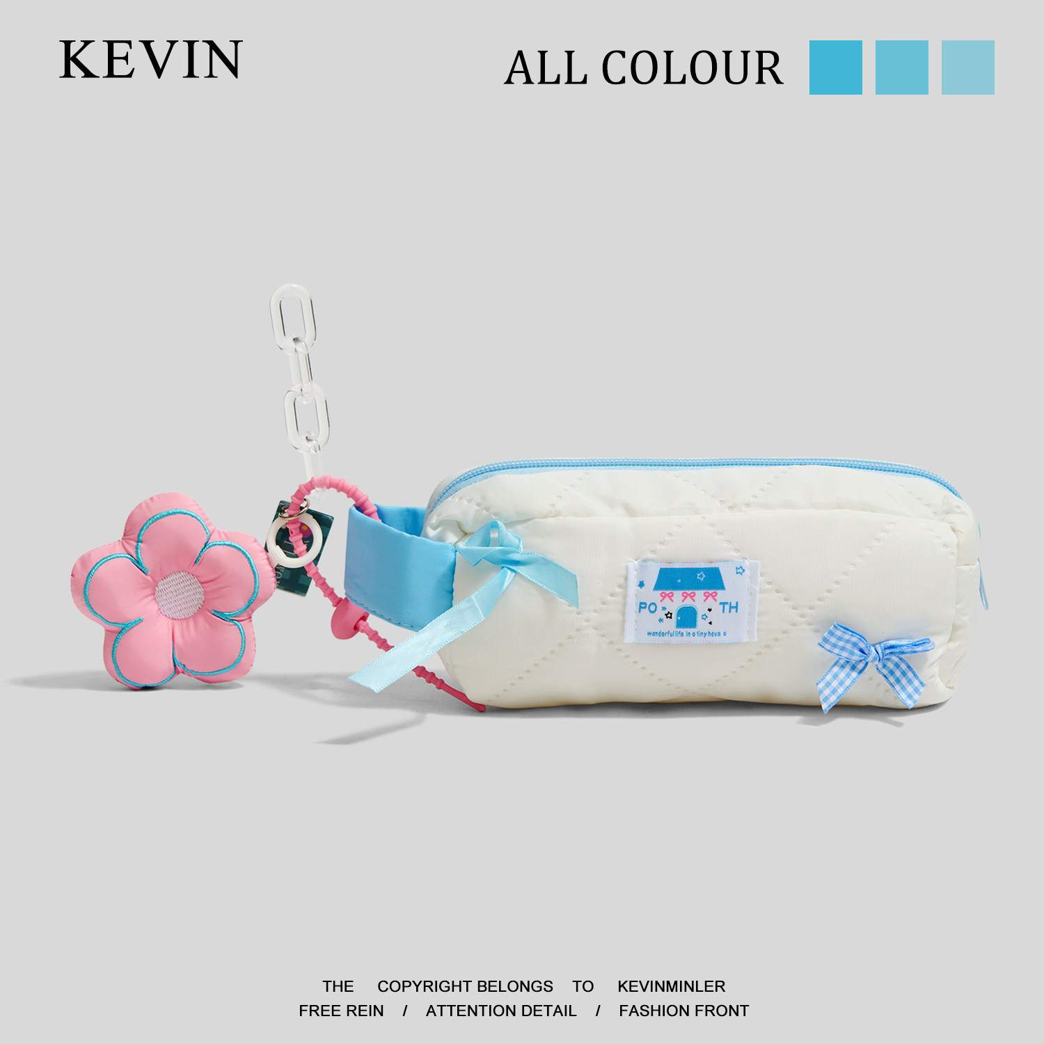Kevin家“无聊了把泡芙笔袋装满”短款便携文具袋蝴蝶结铅笔袋ins